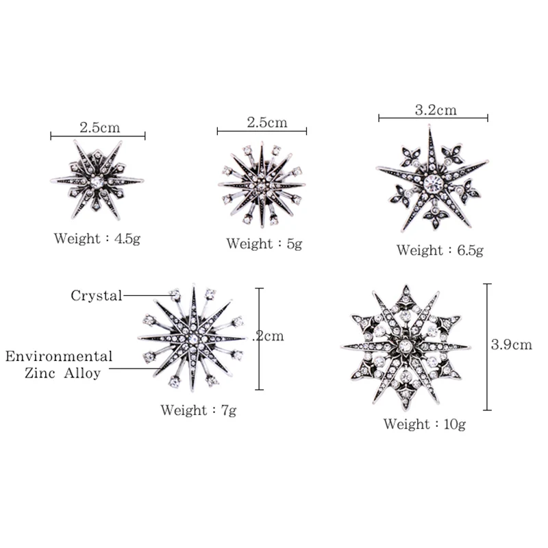 Женская Брошь в виде снежинки J.Shine, брошь с кристаллами, 5 шт.компл.