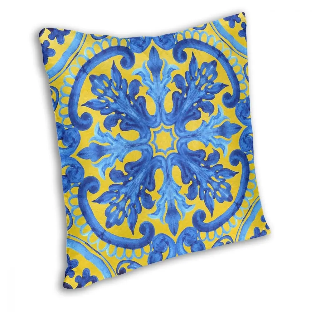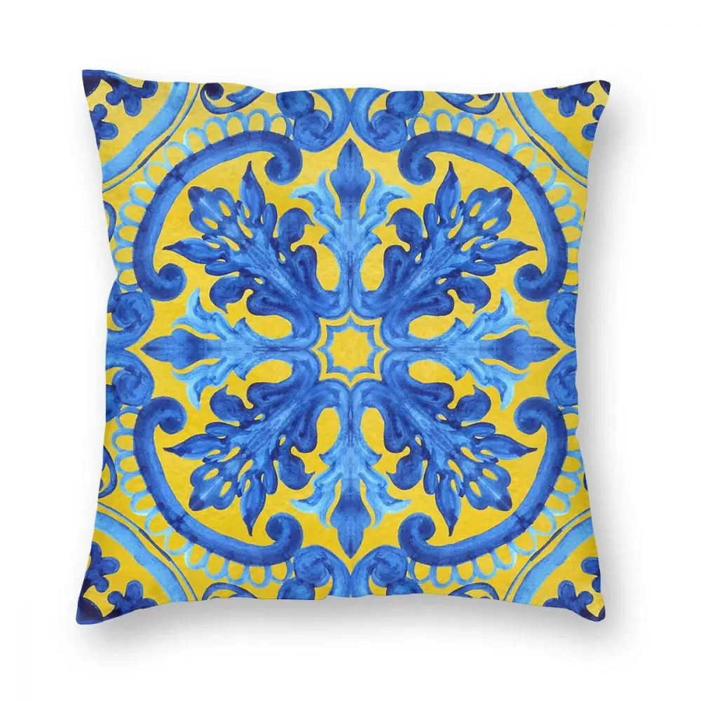 Португальская плитка Azulejo, квадратная подушка, чехол из полиэстера, декоративная подушка, синие фарфоровые модные наволочки