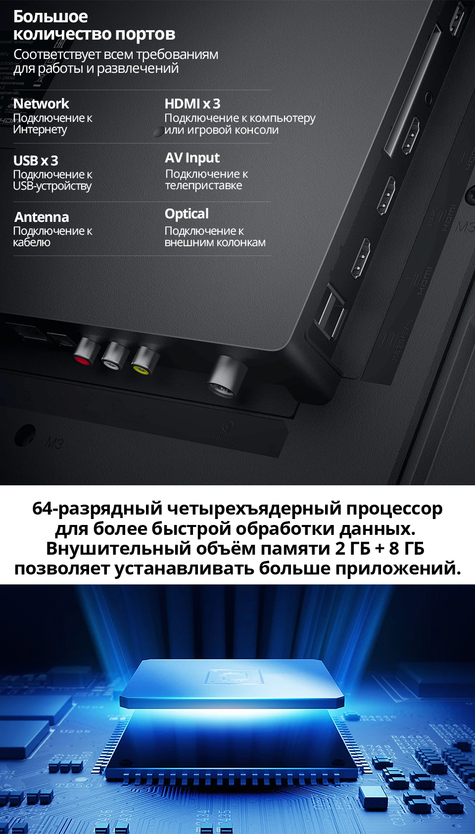 Очень хороший телевизор, пока что нет ни каких нареканий. Картинка хорошая, конечно это не 4к как на дорогом самсунге, но и цена не 100к а 30. 55 дюймов, максимальный размер для обычных квартир, стоял раньше 43 дюйма, по сравнению со старым этот ну просто ОГРОМНЫЙ чему я несомненно рад. Все легко и просто в установке, как на тех же планшетах андроид. Голосовое работает. По звуку, для не искушённых людей звука более чем достаточно, если нет средств купить саундбар. Рекомендую продавца и сами телевизоры.