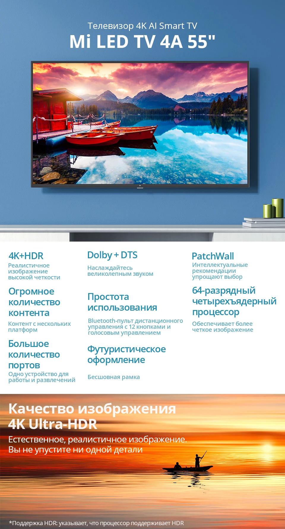 Телевизор 55 дюйма Xiaomi Mi TV 4A 55 Smart TV Xiaomi 4k Television 55Inch Led TV L55M5-5ARUM