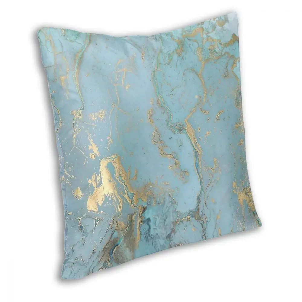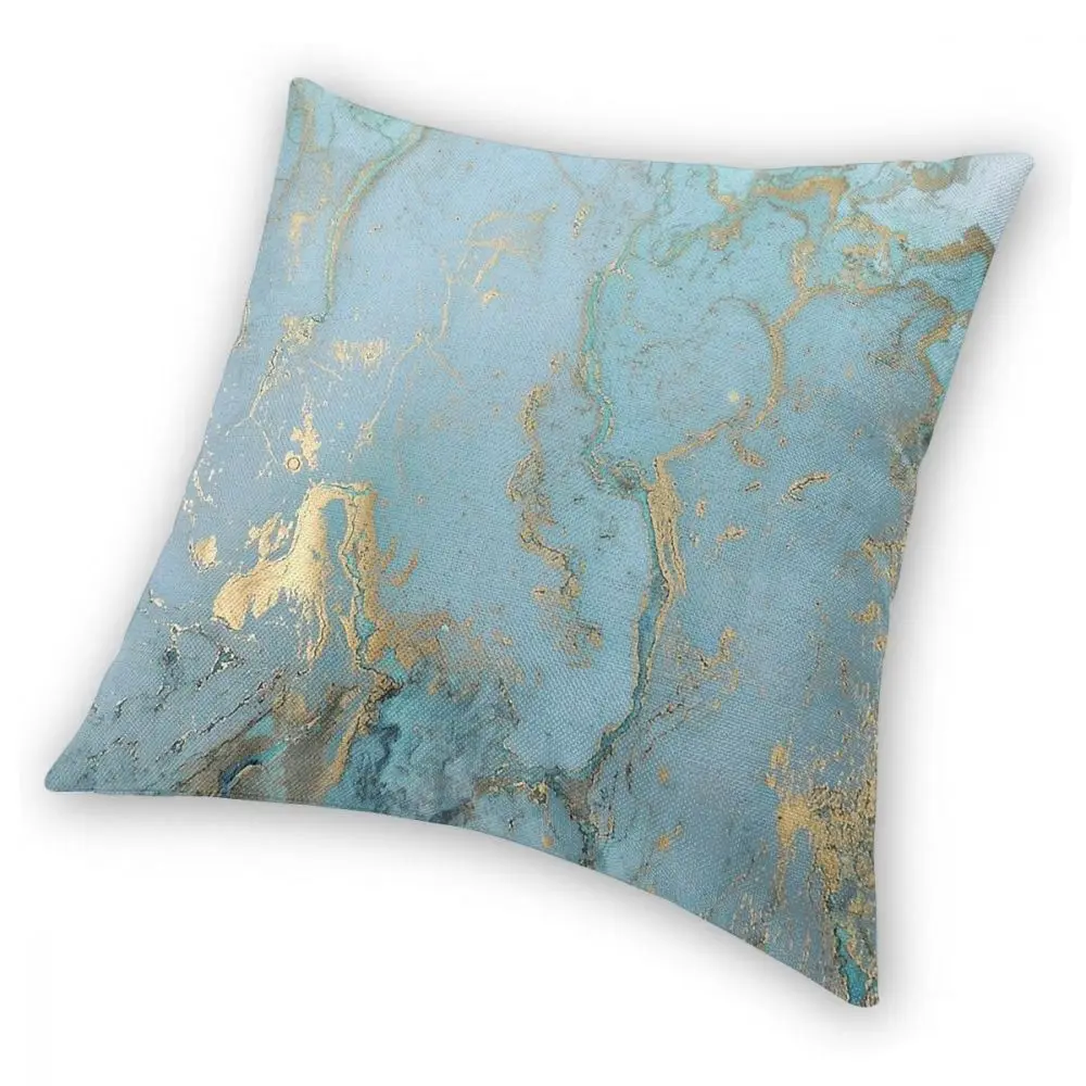 Наволочка для подушки с золотым эффектом, бирюзово-голубая, Мраморн...