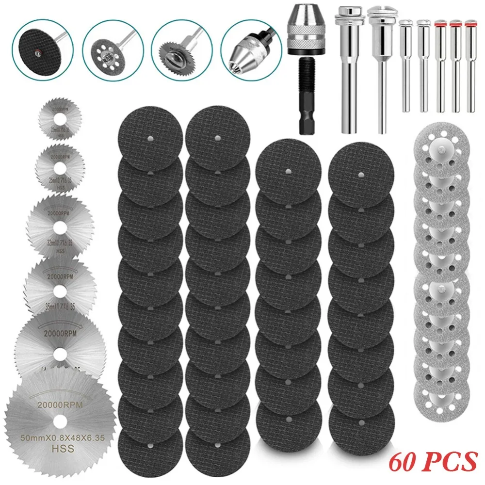 Набор лезвий для мини циркулярной пилы из быстрорежущей стали, 60 шт., шлифовальные диски из смолы, Алмазное режущее лезвие, металлический резак, электроинструмент для дрели Dremel