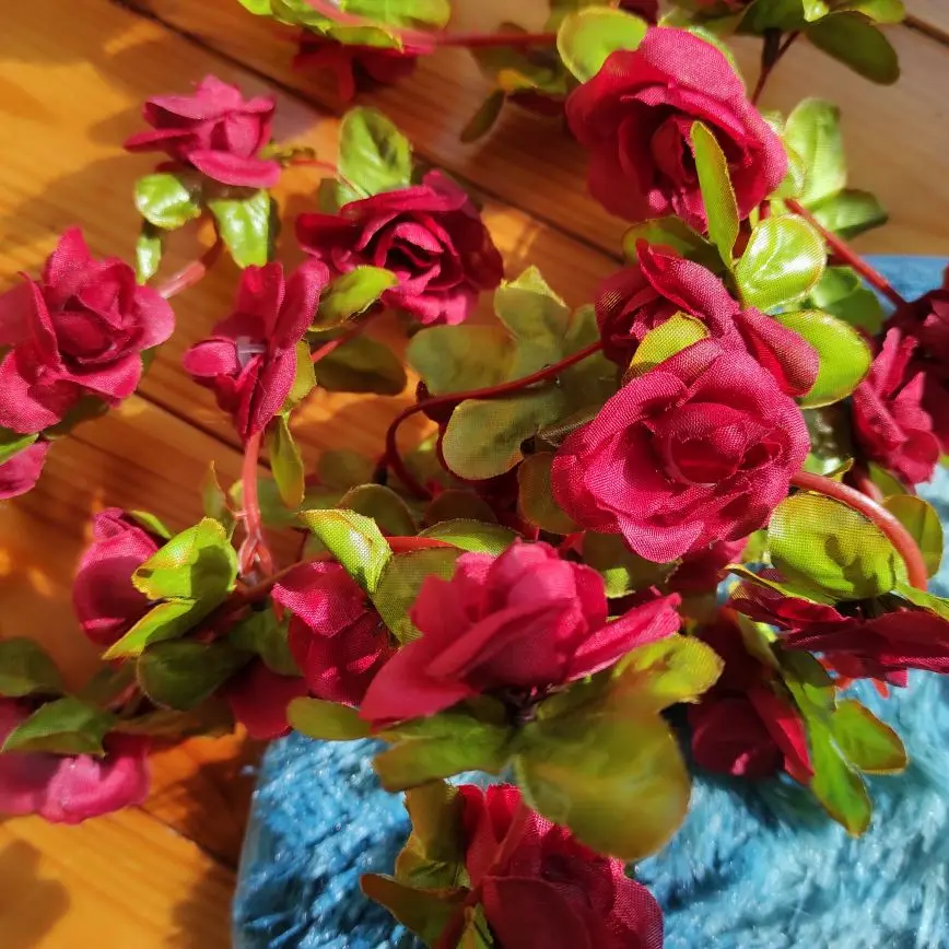 Гирлянда цветов хорошего качества, длина соответсвует указанной, цветочки практически не мятые. Но пришёл не тот цвет, заказывали ярко красный, а пришёл бордовый (почти коричневый). Продавец ответил, что это так монитор искажает цвет(
