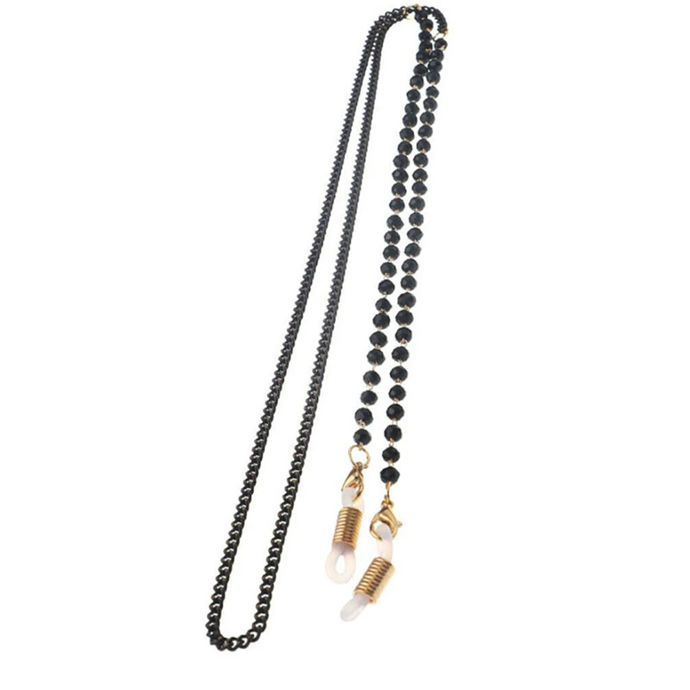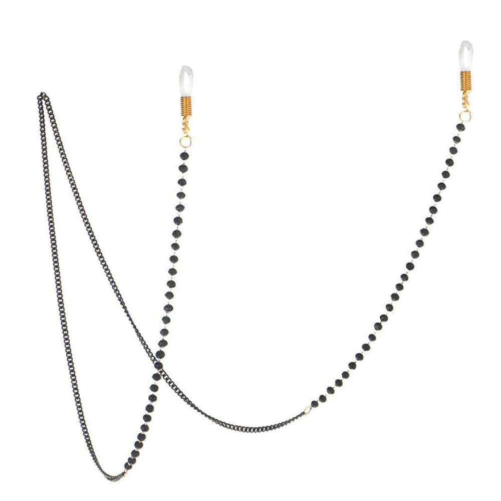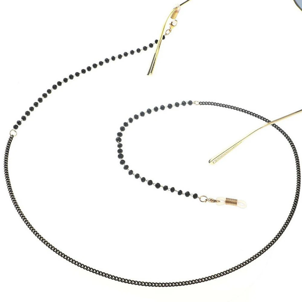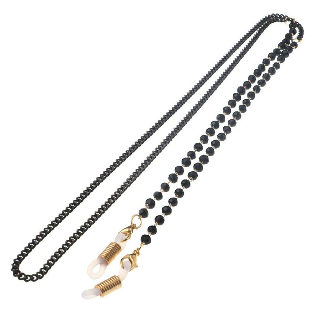 Цепочка для очков с акриловыми кристаллами, ремешок на шею с черными бусинами для очков, металлический шнурок для солнцезащитных очков, шнурок для маски, 1 шт.