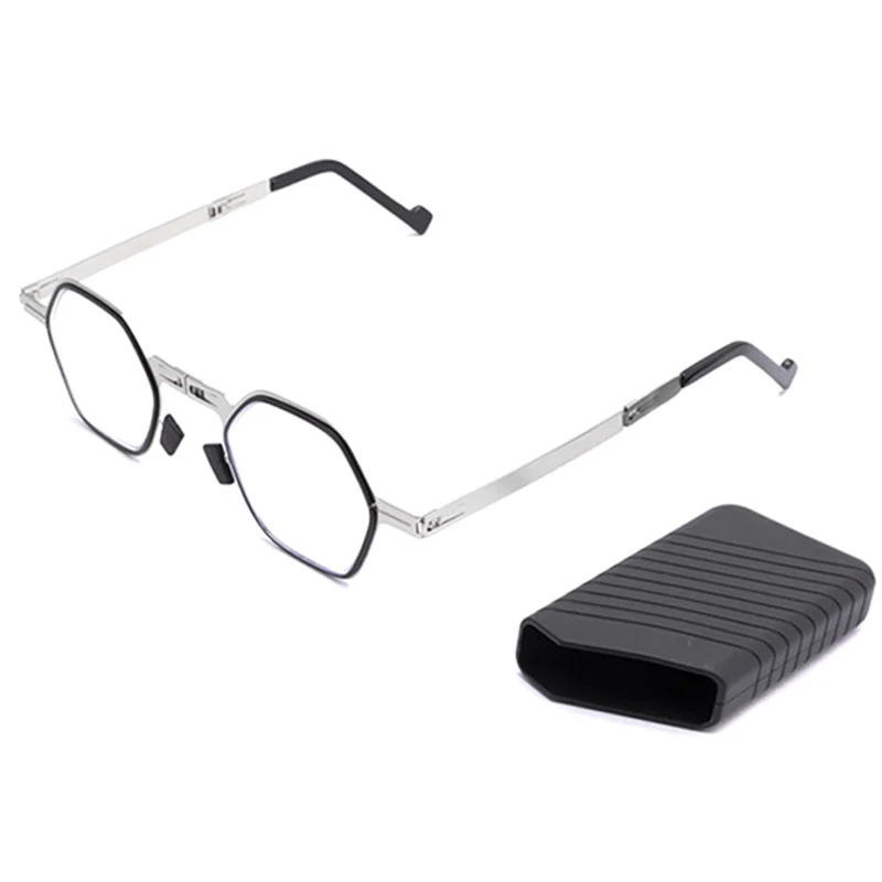 Модные складные мини-очки для чтения для мужчин и женщин, пресбиопические очки с защитой от сисветильник света, складные шестигранные полностью металлические очки