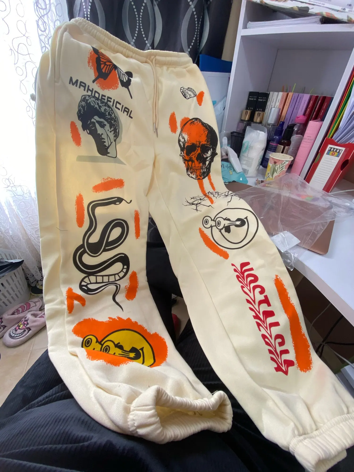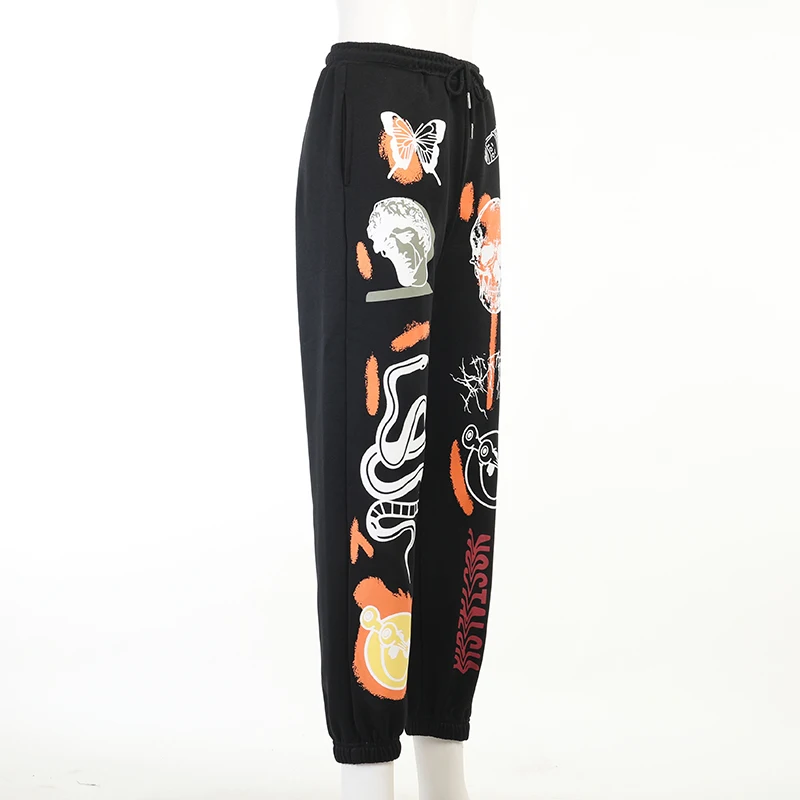 InstaHotженские спортивные брюки Harajuku с принтом из мультфильма; Брюки для бега; 2021 брюки-карго с завязками; Уличная одежда; Повседневные осенние спортивные брюки