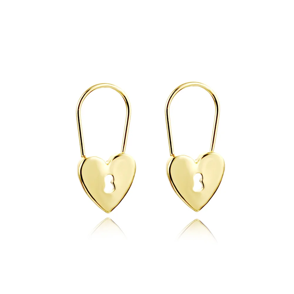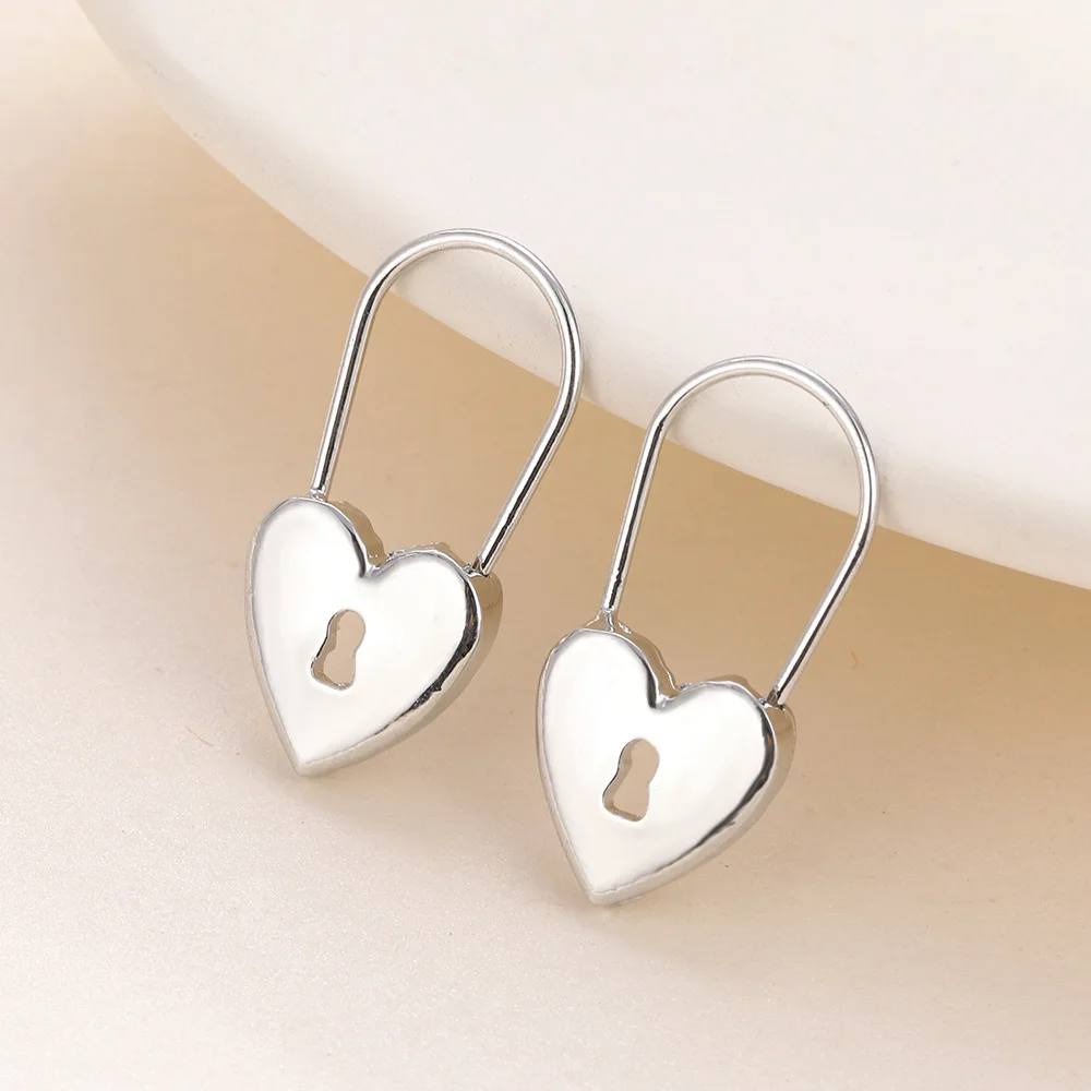 Цвета: золотистый, серебристый Цвет маленькое сердце серьги с замком для женские модные туфли в лаконичном стиле пустотелые геометрические английская булавка серьги-гвоздики хип-хоп, панк украшения