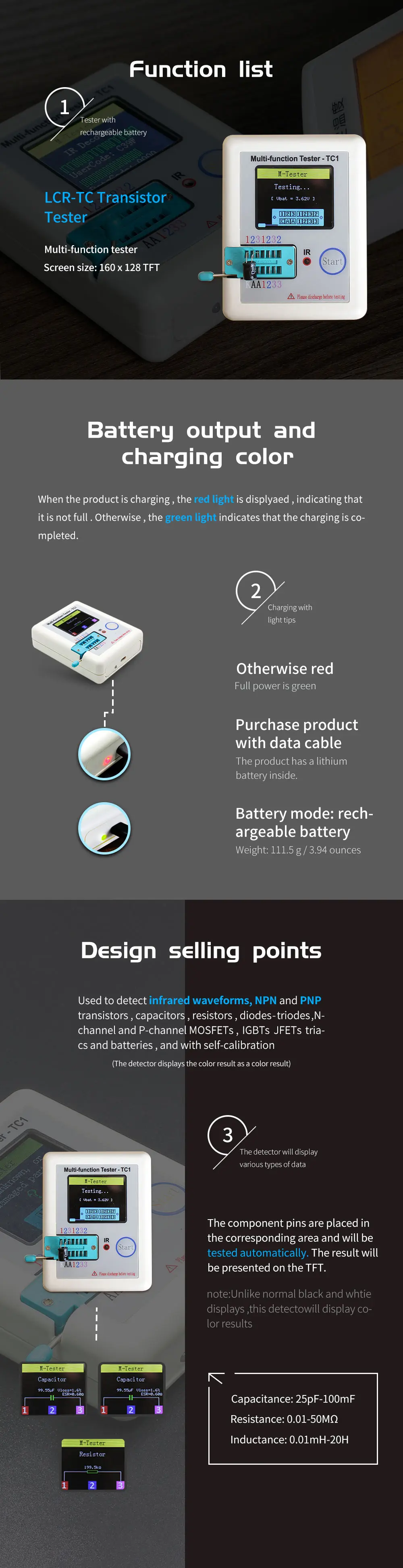 Измерительный Транзистор тестер многофункциональный заменяемый дете...