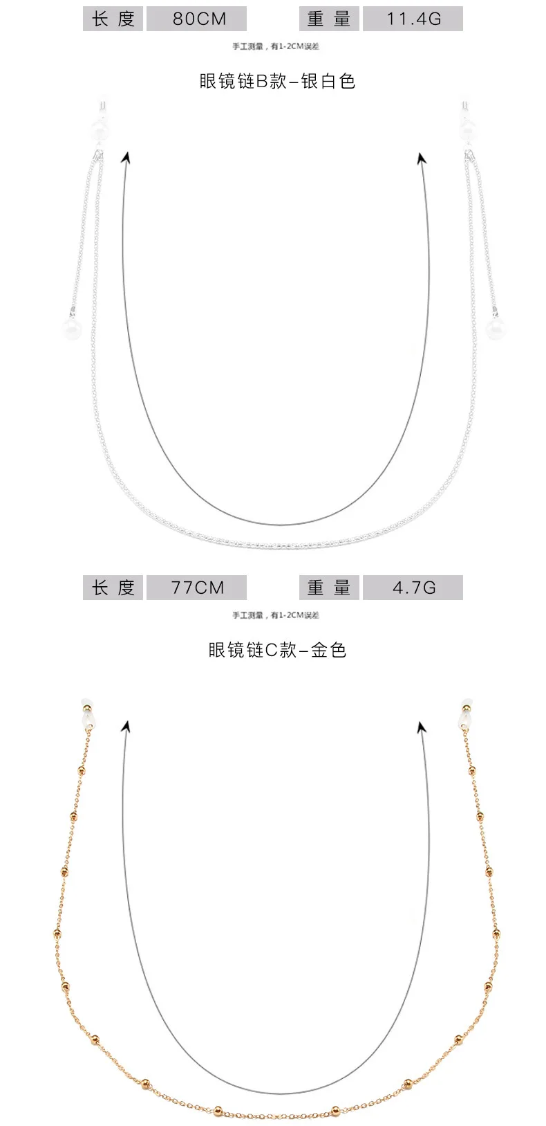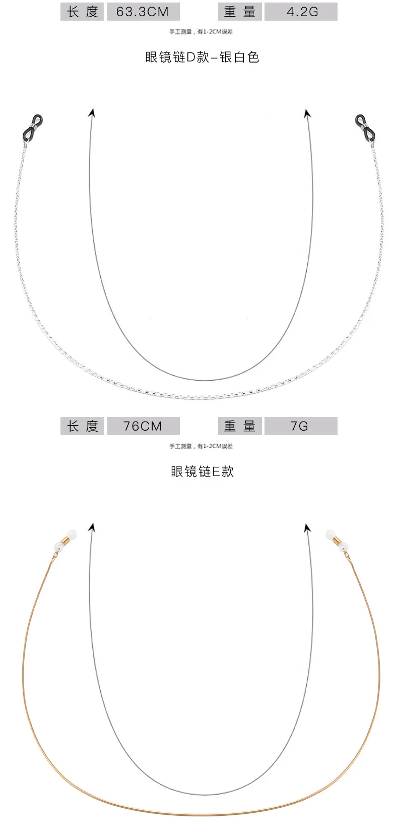 Посылка включает в себя: 1 * цепь для очков (только цепочка для очков, другие аксессуары не включены!)