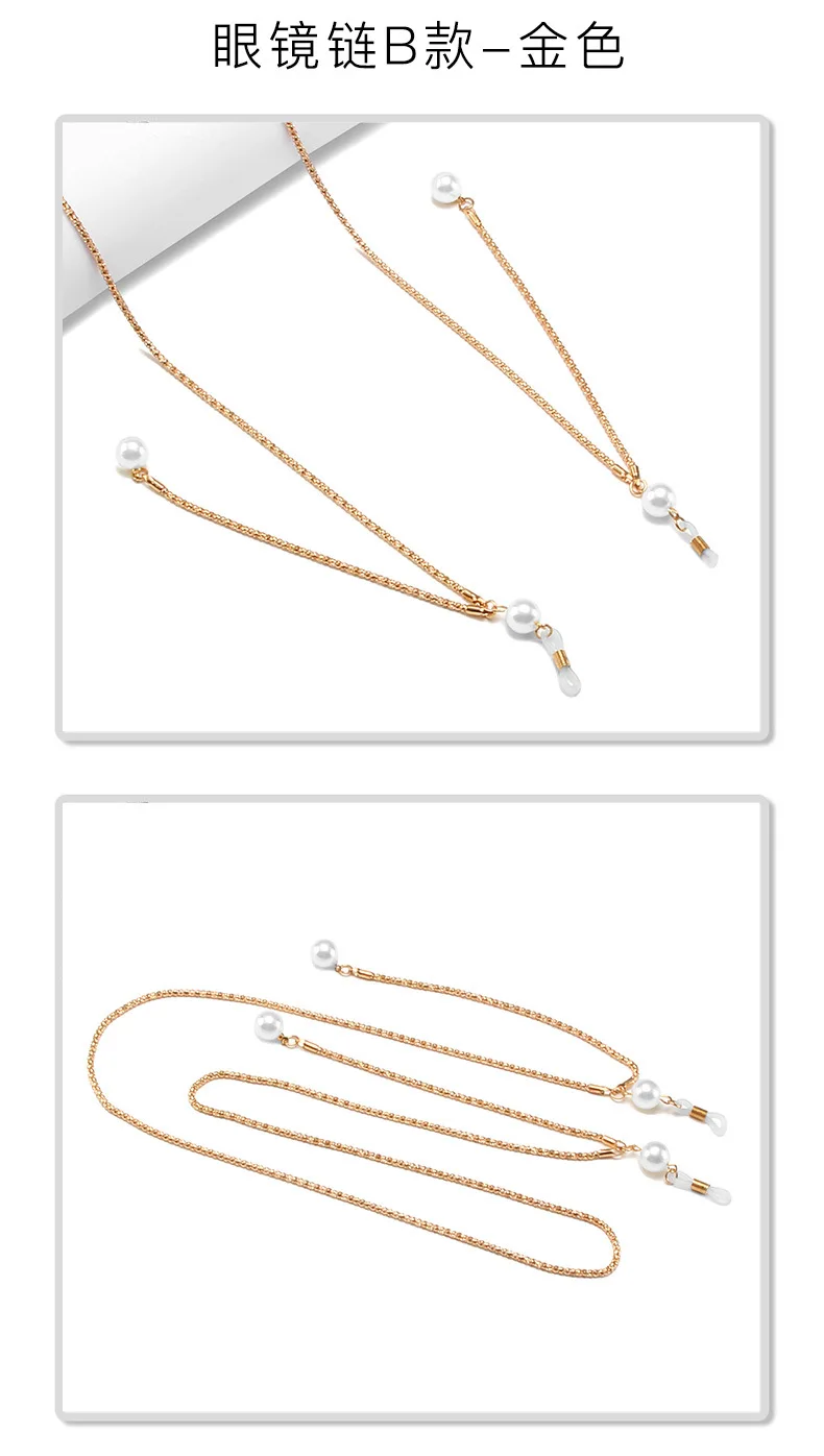 ОписаниеСтиль: Модный, уличная одеждаМатериал: сплав, жемчуг, стразыРазмер: 70 смПовод: повседневная одежда, уличная одежда, свадебные, вечерние, ювелирные изделия, подарок, летняя пляжная одеждаТолько цепочка для очков, другие аксессуары в комплект не входят!