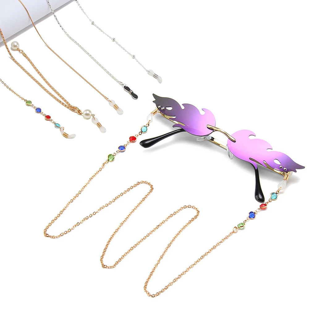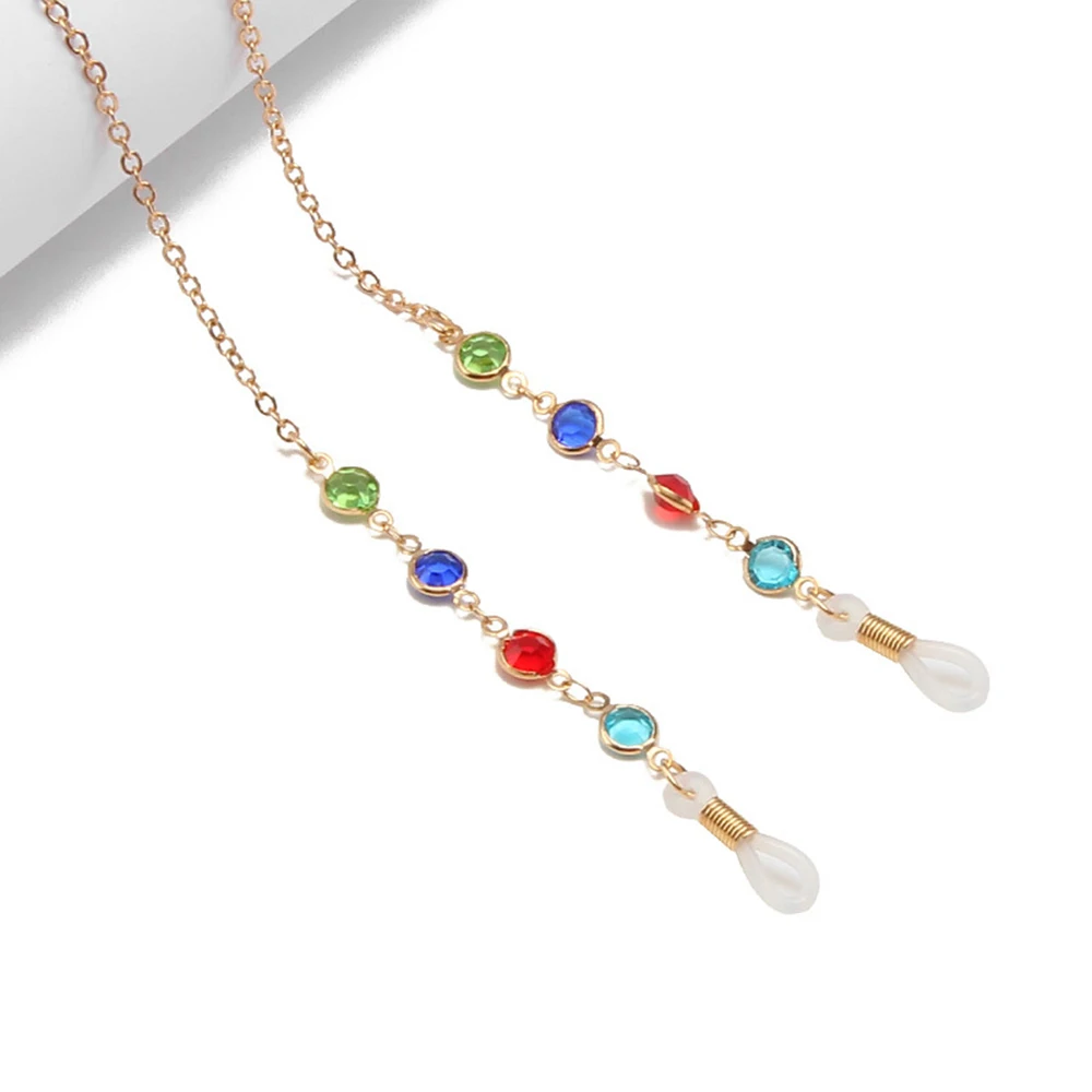1 шт., украшенные разноцветными кристаллами бисера держатель для очков Модные ювелирные изделия из золота цепочки для очков для женщин аксессуары для глаз, солнцезащитные очки, ремни шнур шнурок для очков