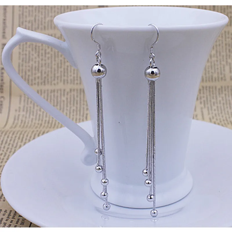 Прямая поставка Модные Элегантные Простые Длинные Серьги серебряног...
