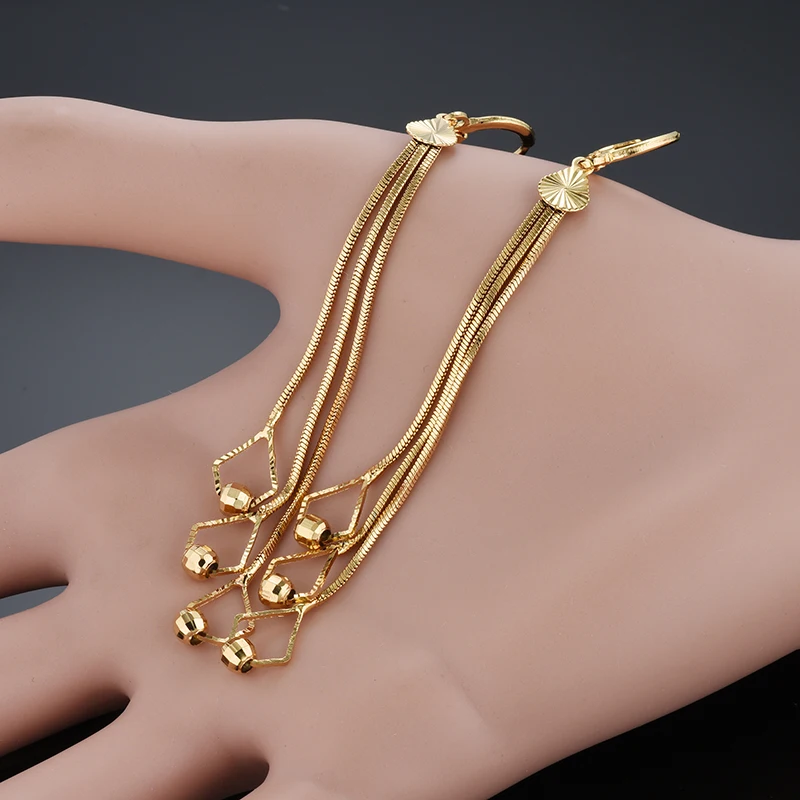 Винтажные длинные висячие серьги для женщин и девушек, оптовая продажа, новые модные роскошные ювелирные изделия золотого цвета EH921DST