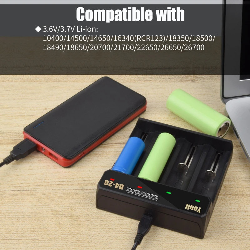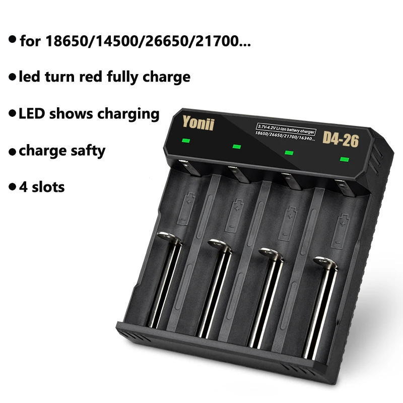 Особенности:Предназначен для аккумуляторов 18650Посылка включает:1 * зарядное устройство (без аккумулятора)Описание товараНазвание продукта: зарядное устройство 18650Особенности: 4 слота для самостоятельной зарядкиРежим питания: Универсальный usb-кабель для зарядкиСветодиодный индикатор показывает состояние зарядки и силу токаСовместимая модель: 26700/26650/26500/25500/22700/21700/20700/22650/22500/18700/18500/18650/18490/18350/17650/16650/16340(RCR123)14650/14500/10440100% новый и высокое качествоШесть видов защиты: защита от перезаряда, защита от перегрузки по току, защита от перегрева, защита от короткого замыкания, защита от обратного соединения, защита от перегрузкиТехнология быстрой зарядки: быстрая зарядкаЭтот чехол для зарядного устройства изготовлен из прочного пластика, который является жестким и не легко сломать