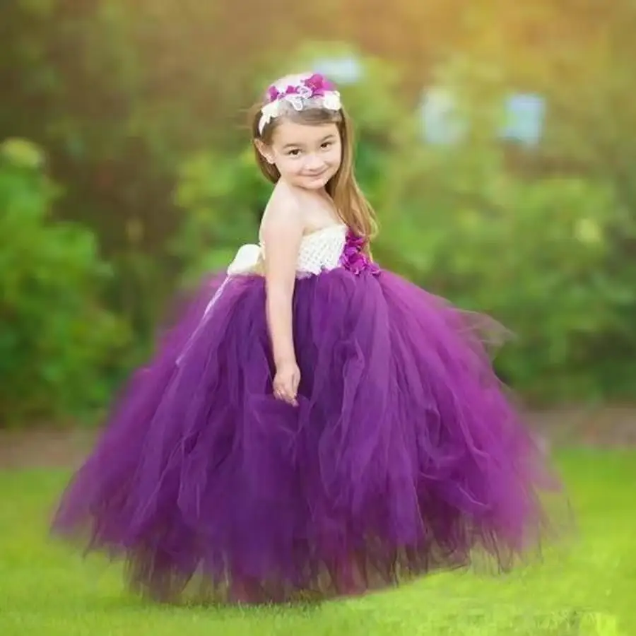 Платье-пачка для девочек с розовым цветком, детское вязаное фатиновое платье, бальное платье с ремешком и повязкой на голову, детский костюм на день рождения, платье