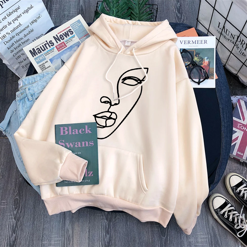 Худи женское с флисовой подкладкой, худи с капюшоном в стиле хип-хоп, Милый Винтажный стиль, с принтом комиксов и лиц, модное удобное худи в стиле Харадзюку, 2021