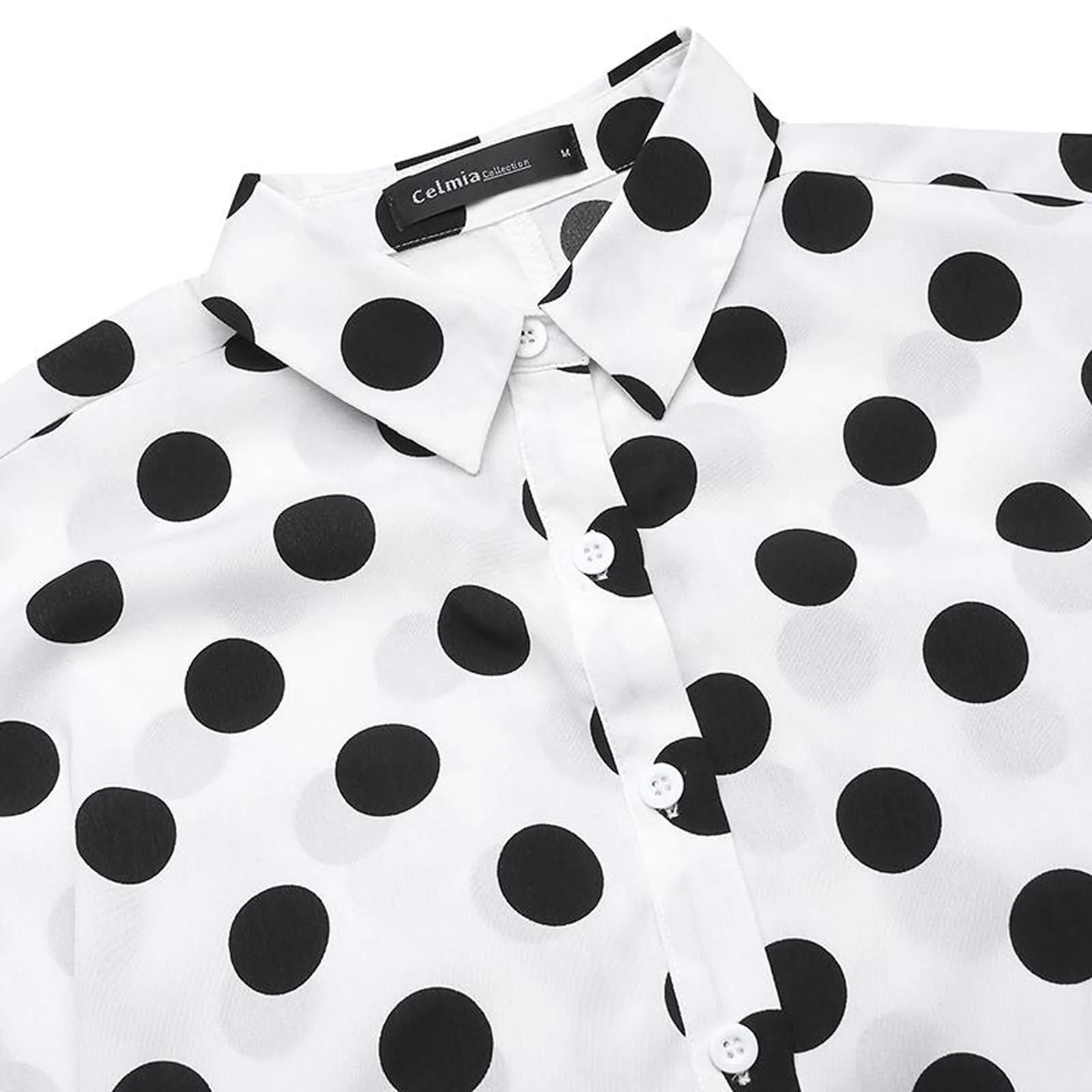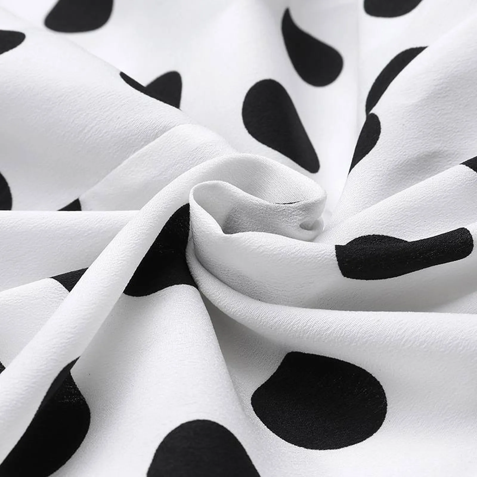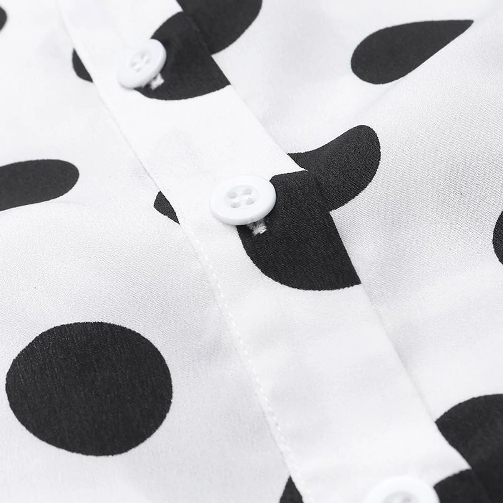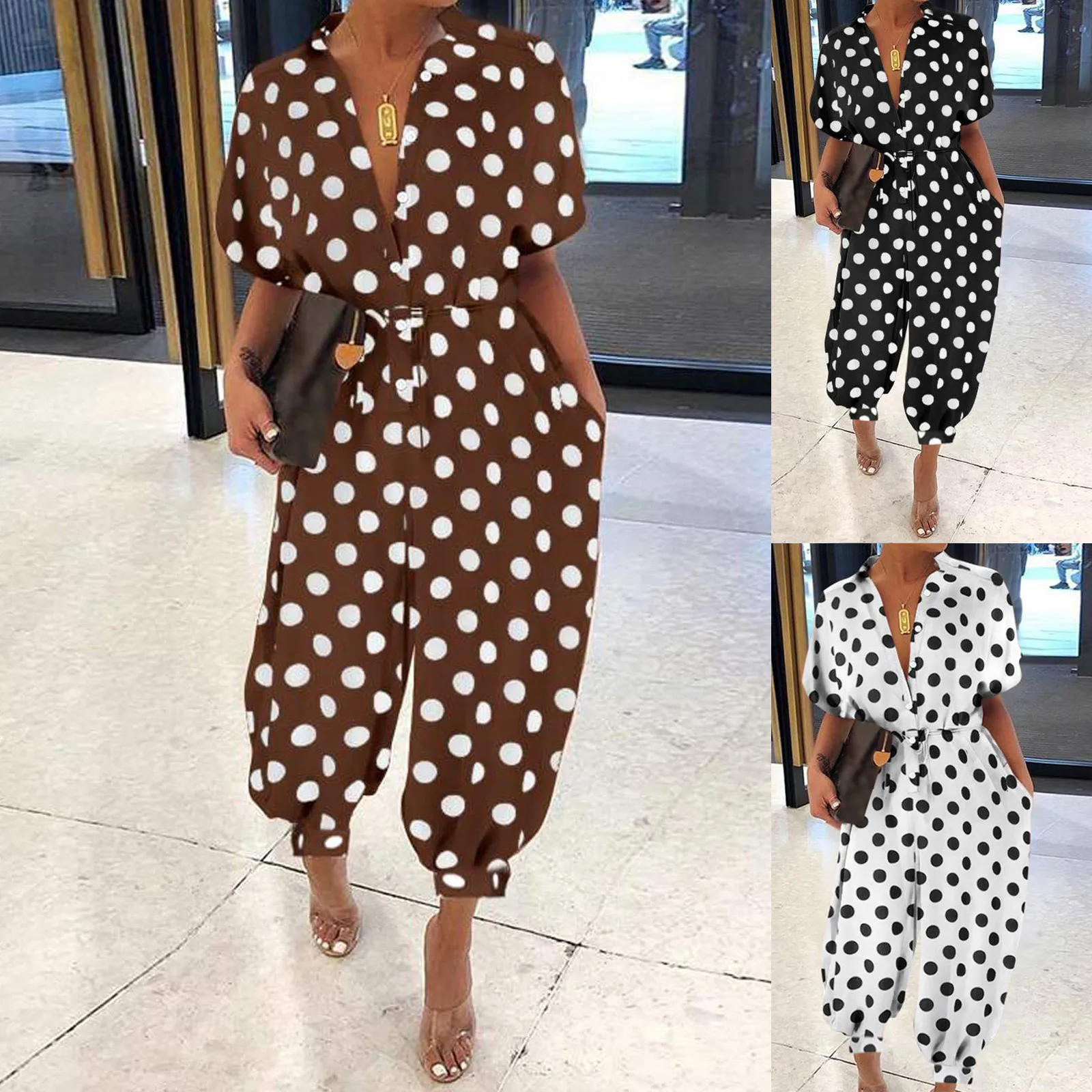 Комбинезон женский оверсайз в горошек, Длинные облегающие брюки с волнистым отложным воротником, на пуговицах, 45 #
