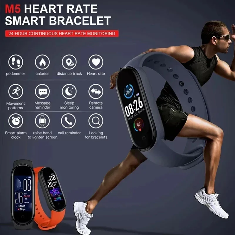 Новинка 2021, спортивный фитнес-трекер с Bluetooth, шагомер M5, Смарт-часы для мужчин и женщин, смарт-Браслет С Пульсометром