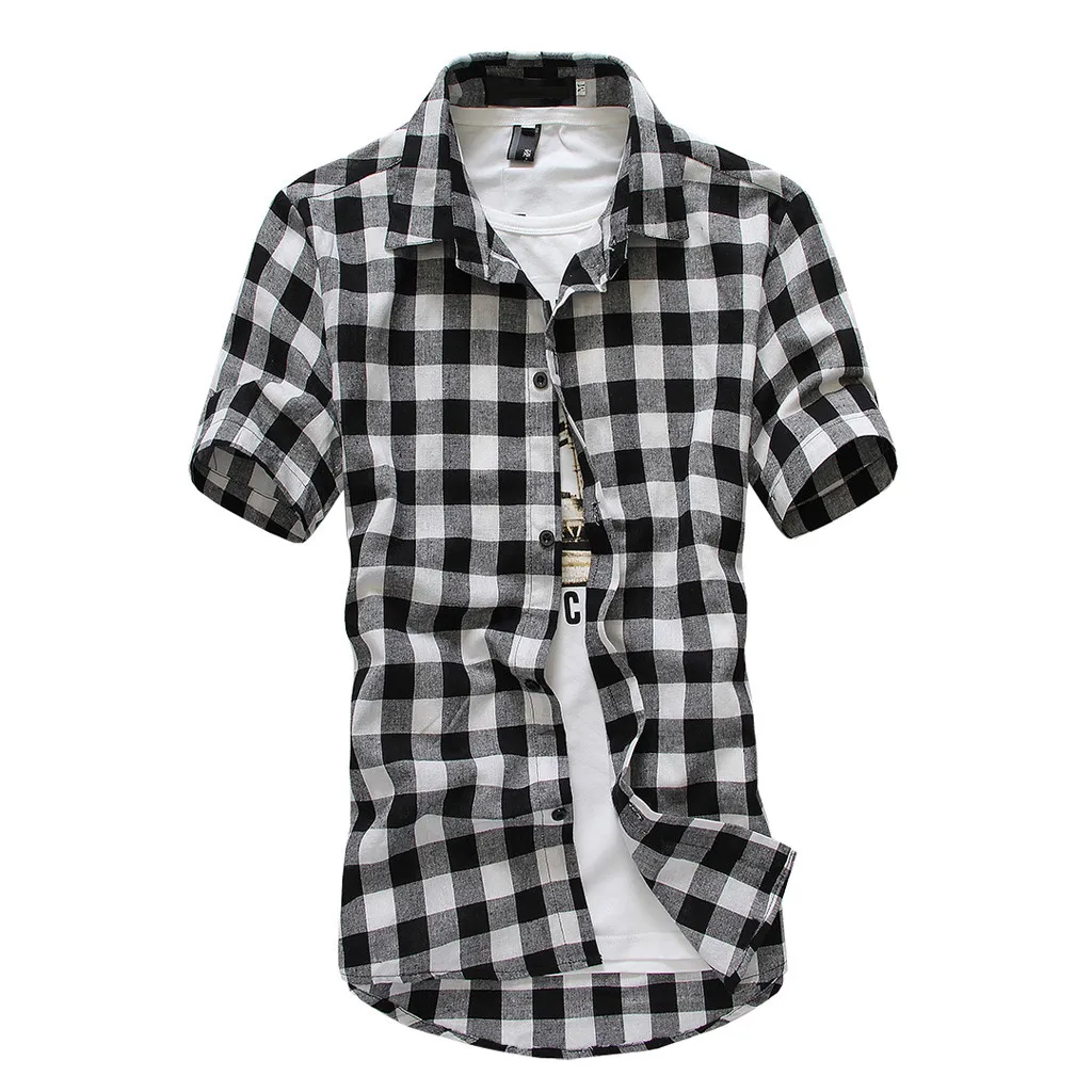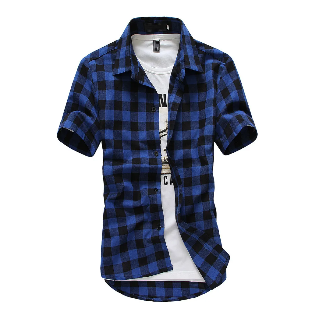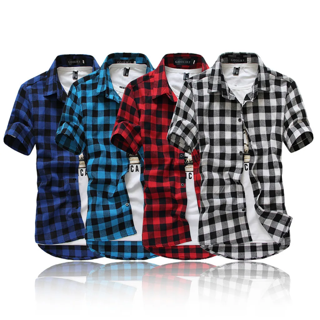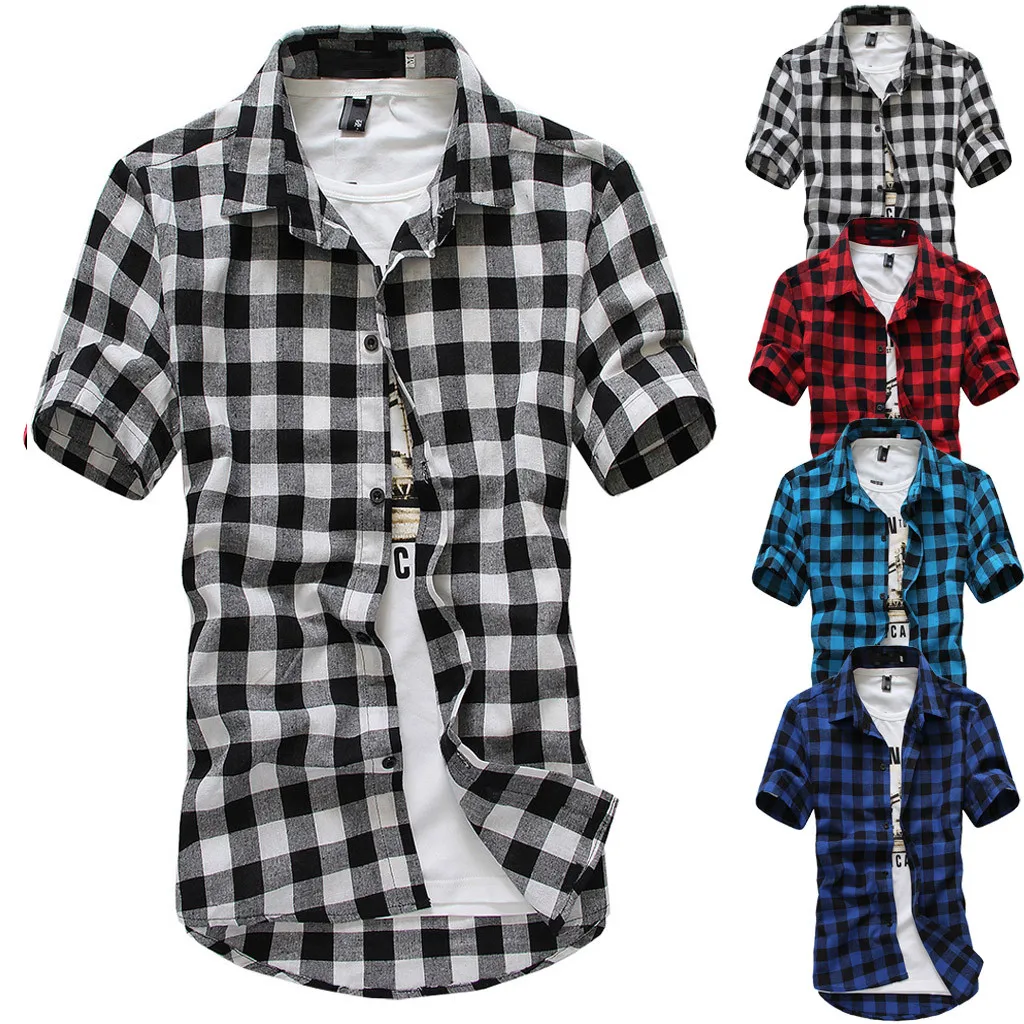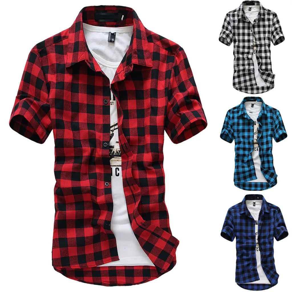 Рубашка мужская в клетку, модная клетчатая рубашка с коротким рукавом, красная и черная, лето