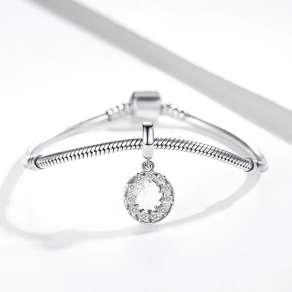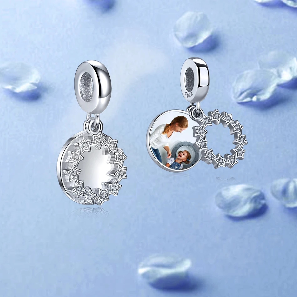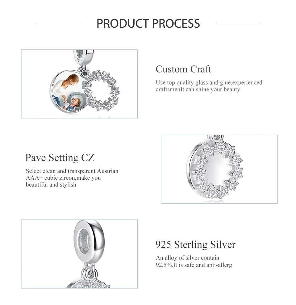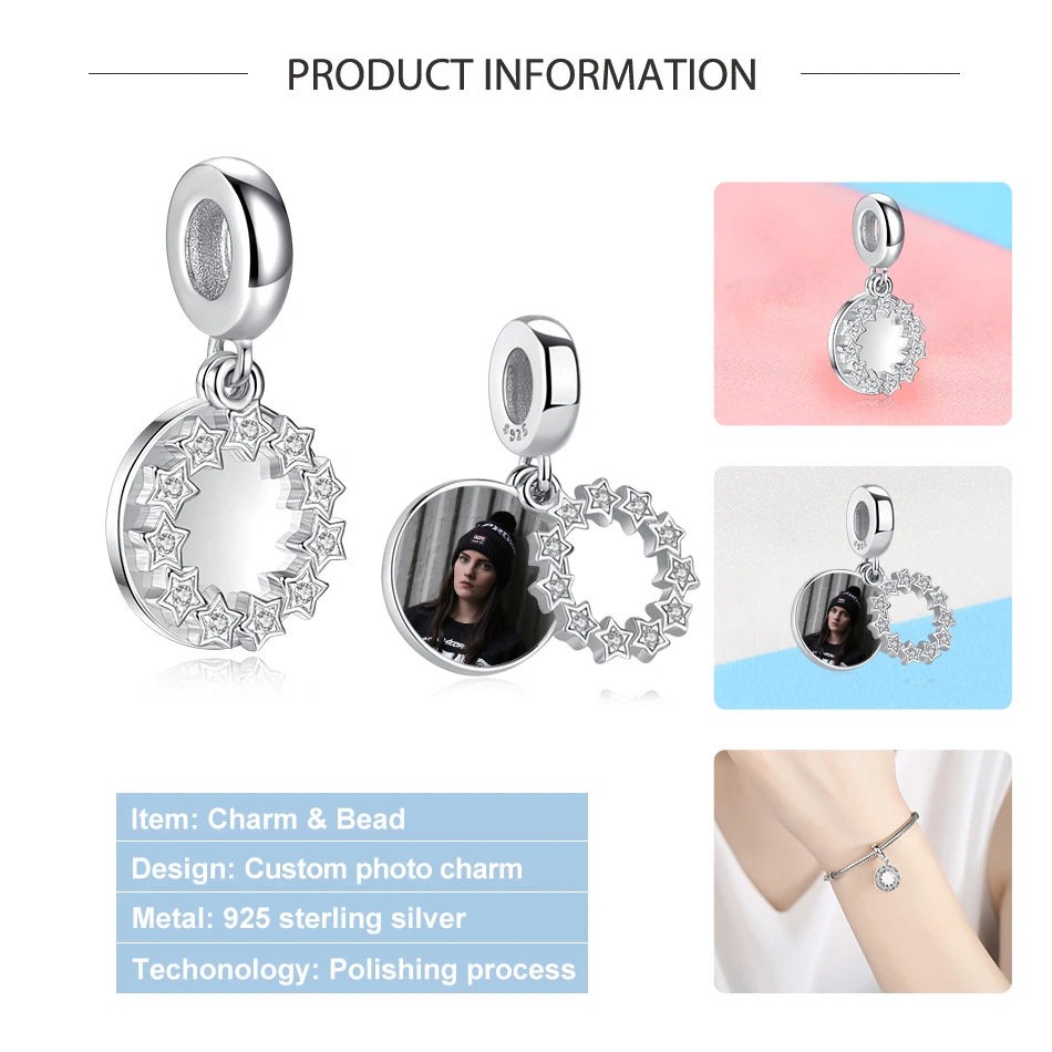 BELAWANG Оригинальное 925 пробы Серебристые круглые с украшением в виде кристаллов со звездой Подвески подходят к оригинальному браслету, пользовательские фото бусины для самостоятельного изготовления украшений