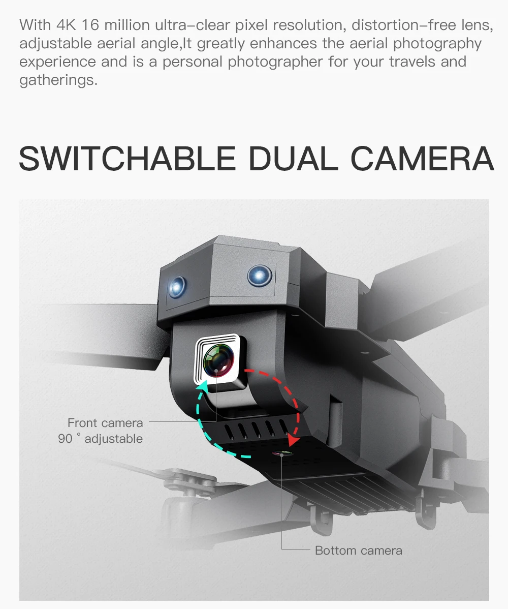 -Есть 3 камеры на выбор. Оснащен двойной камерой 1080P/4K/4K, широкоугольной камерой для широкого спектра фотографий и видео высокой четкости.