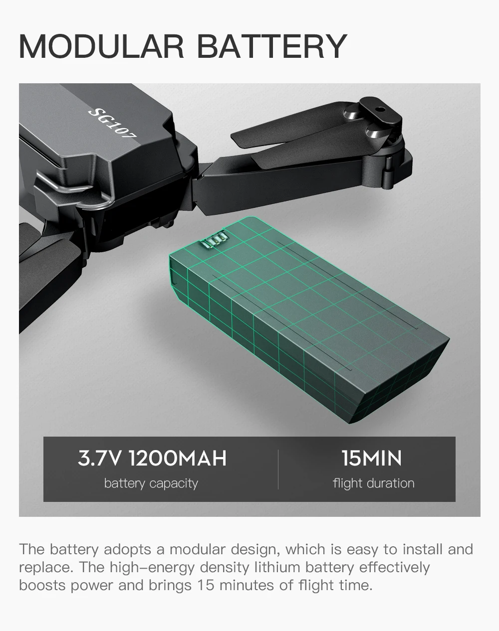 Дрон SG107, двойная камера 4K, Wi-Fi, FPV, трансляция видео в реаль...