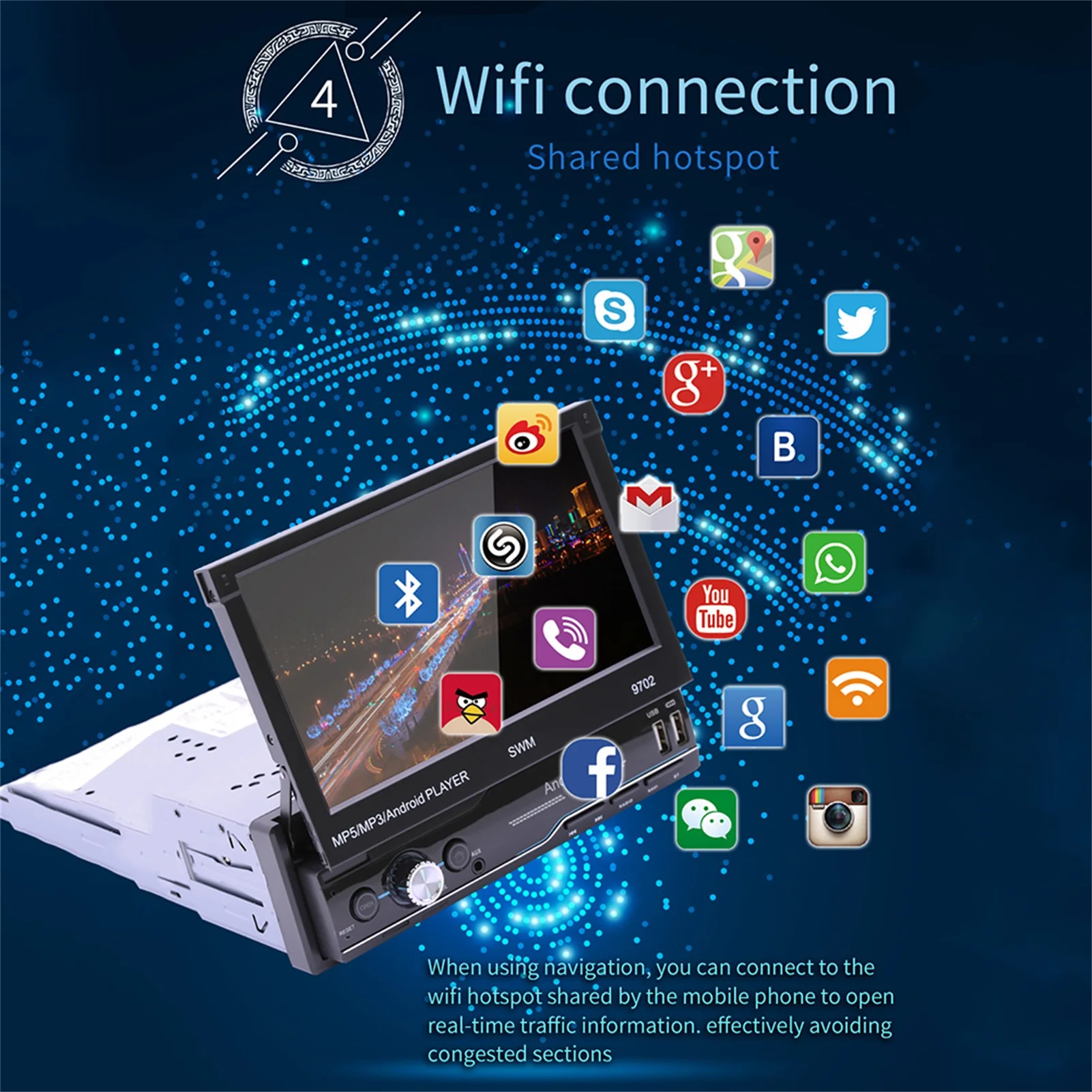 Автомагнитола 1 Din, выдвижная, Android 7 дюймов, GPS-навигация, Bl...