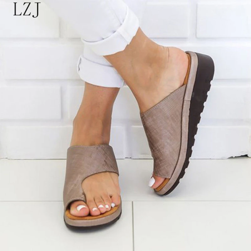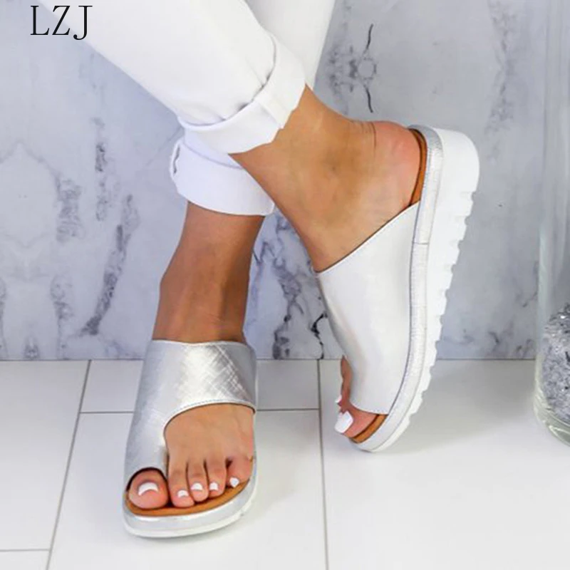 Сандалии женские ортопедические на плоской подошве, удобные босоножки из искусственной кожи, коррекция большого пальца стопы, коррекция противомозолевого распределения, на платформе