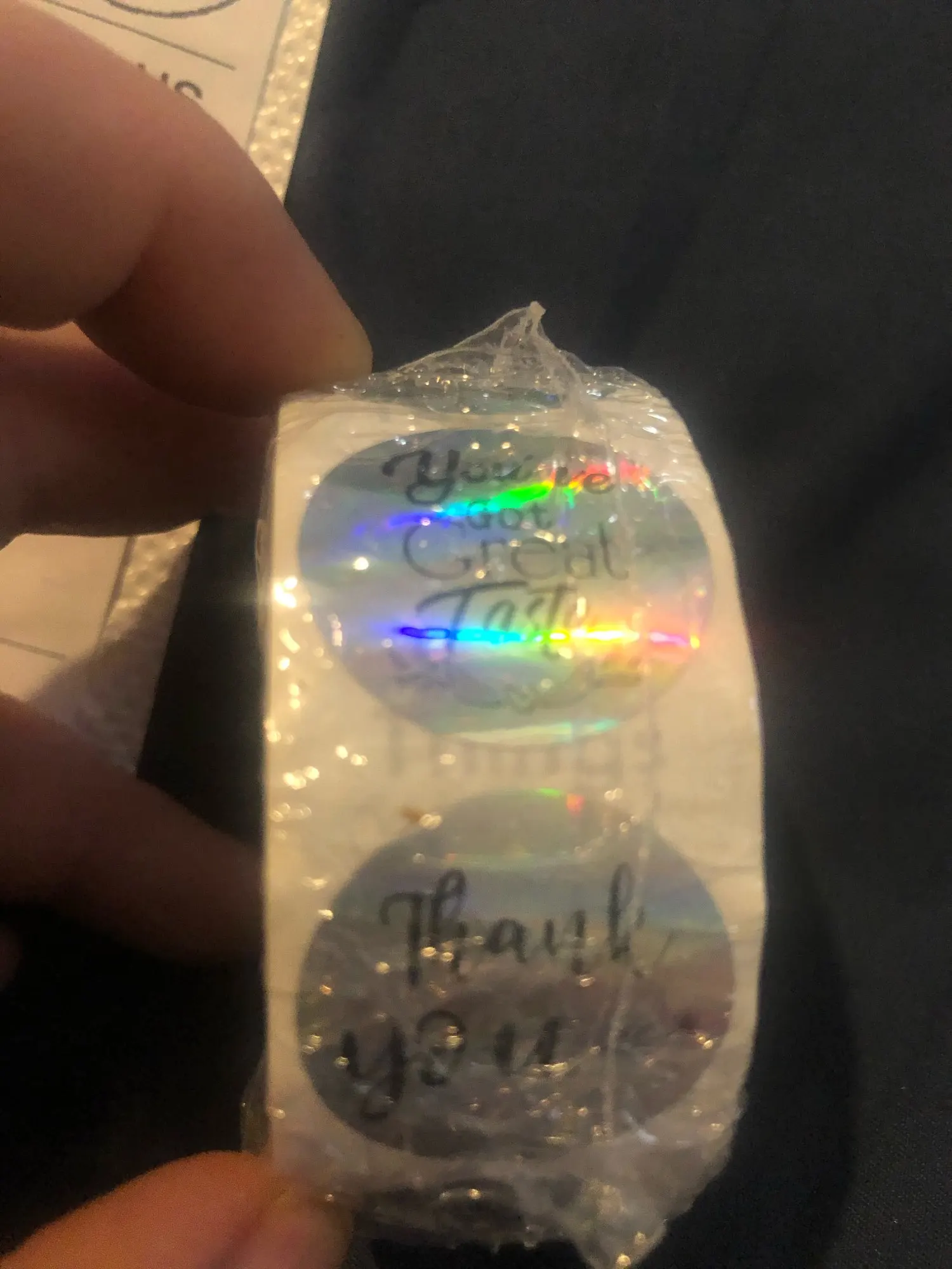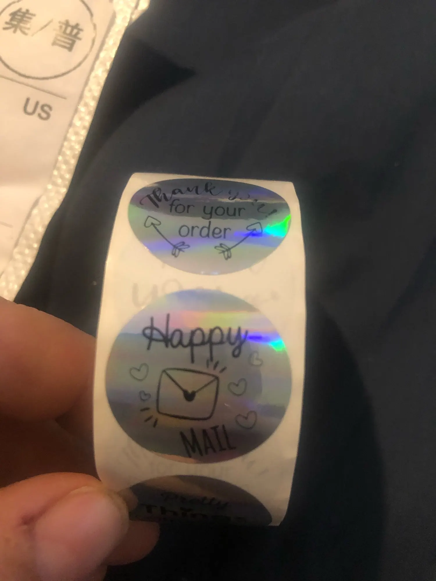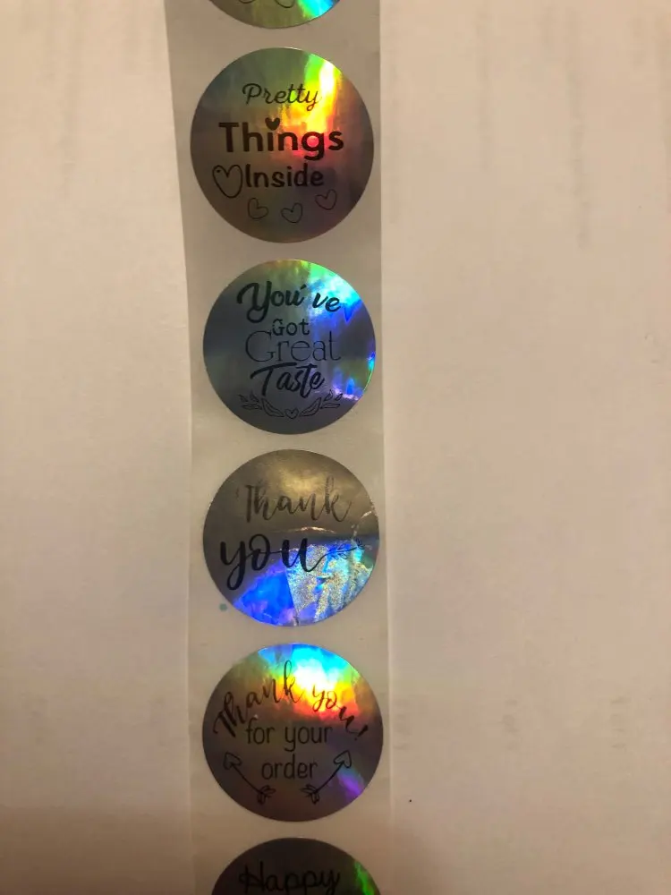 Наклейки не радужные. Они просто серебристые и очень маленькие.