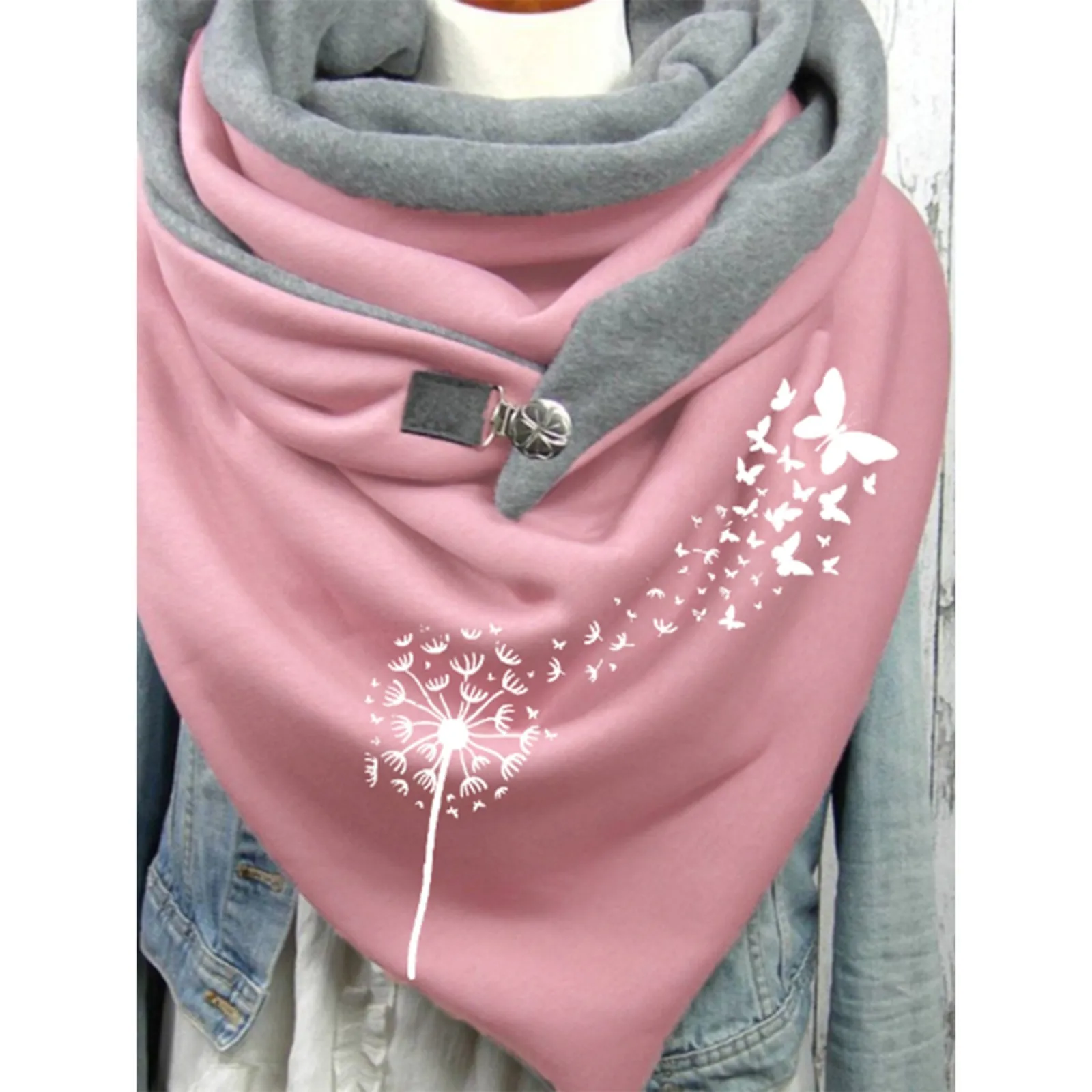 Зимний теплый шарф, Женский мягкий шарф на пуговицах с принтом в виде бабочки и перьев, женские повседневные теплые шарфы, шали bufanda