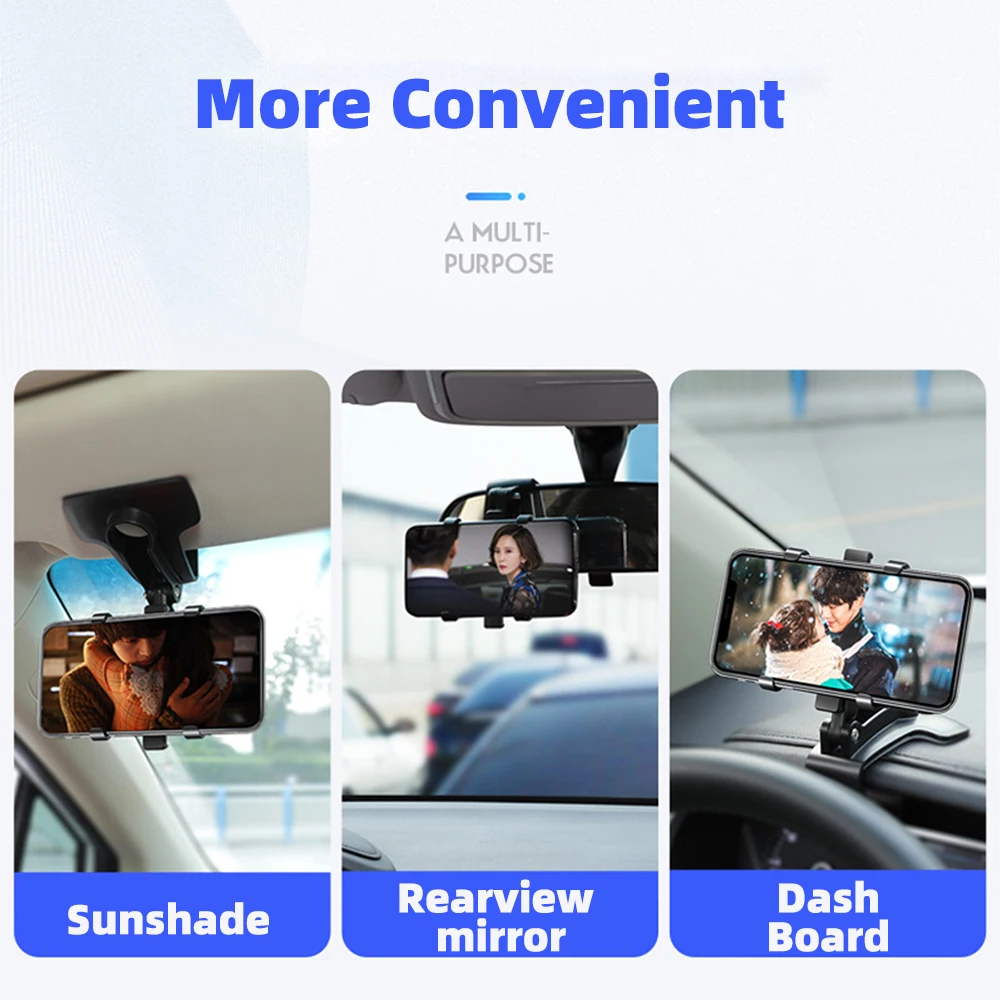 Универсальный автомобильный держатель телефона на приборной панели автомобиля 360 градусов Регулируемый мобильный телефон стойки Зеркало заднего вида солнцезащитный козырек GPS навигации кронштейн