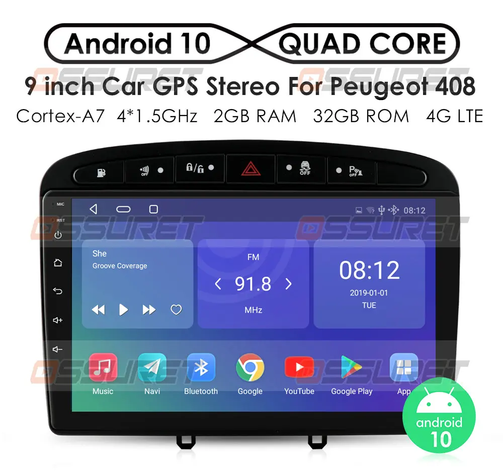 Автомагнитола 2 ГБ + 32 ГБ, Android, навигация для Peugeot 308 408 ...
