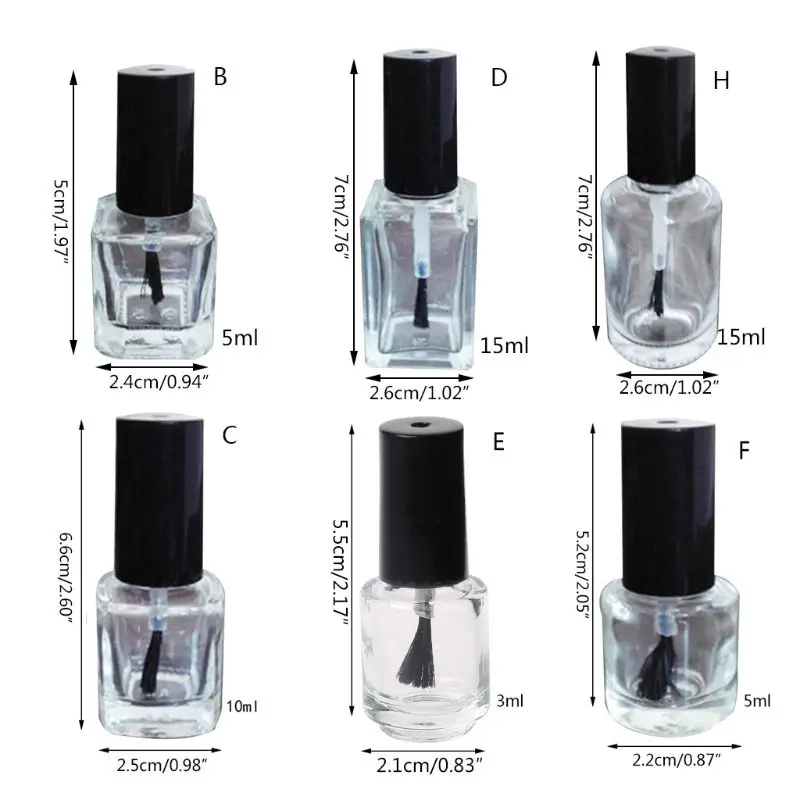 4 емкость для того, чтобы выбрать: 3/5/10/15 мл. Квадратная/круглая форма на выбор. Прозрачная стеклянная бутылка с кисточкой и крышкой.