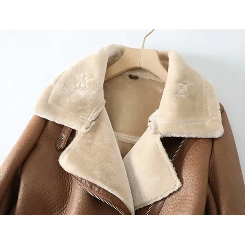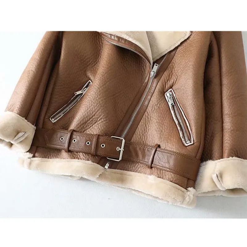 UHYTGF, зимняя куртка, женская, толстая, из искусственной кожи, меховая, дубленка, женская, кожаная куртка, пальто с ремнем, 928