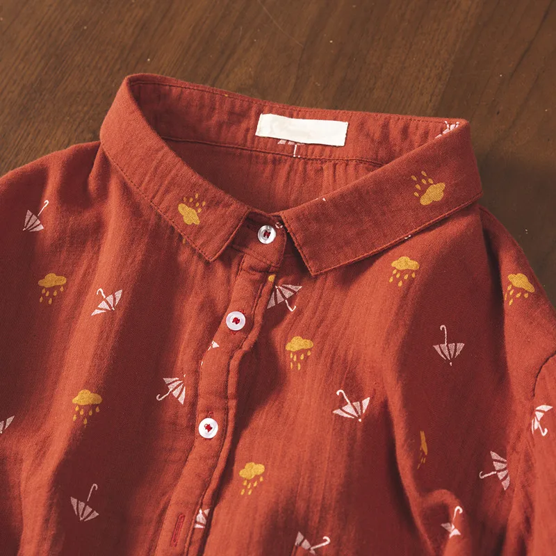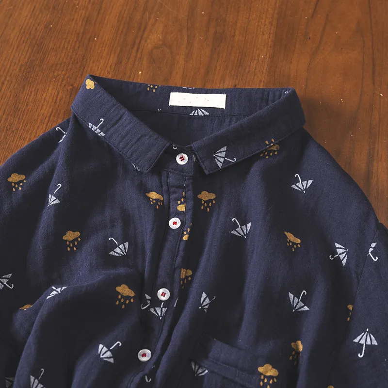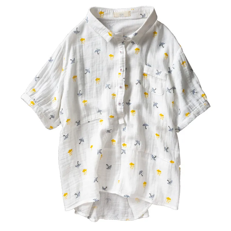 Lamtrip милый кавайный зонт в виде капель дождя с принтом Изделие из хлопка с короткими рукавами пряжа в стиле Питер Пэн, рубашка с воротником, блуза топ в стиле Mori Girl 2021 лето