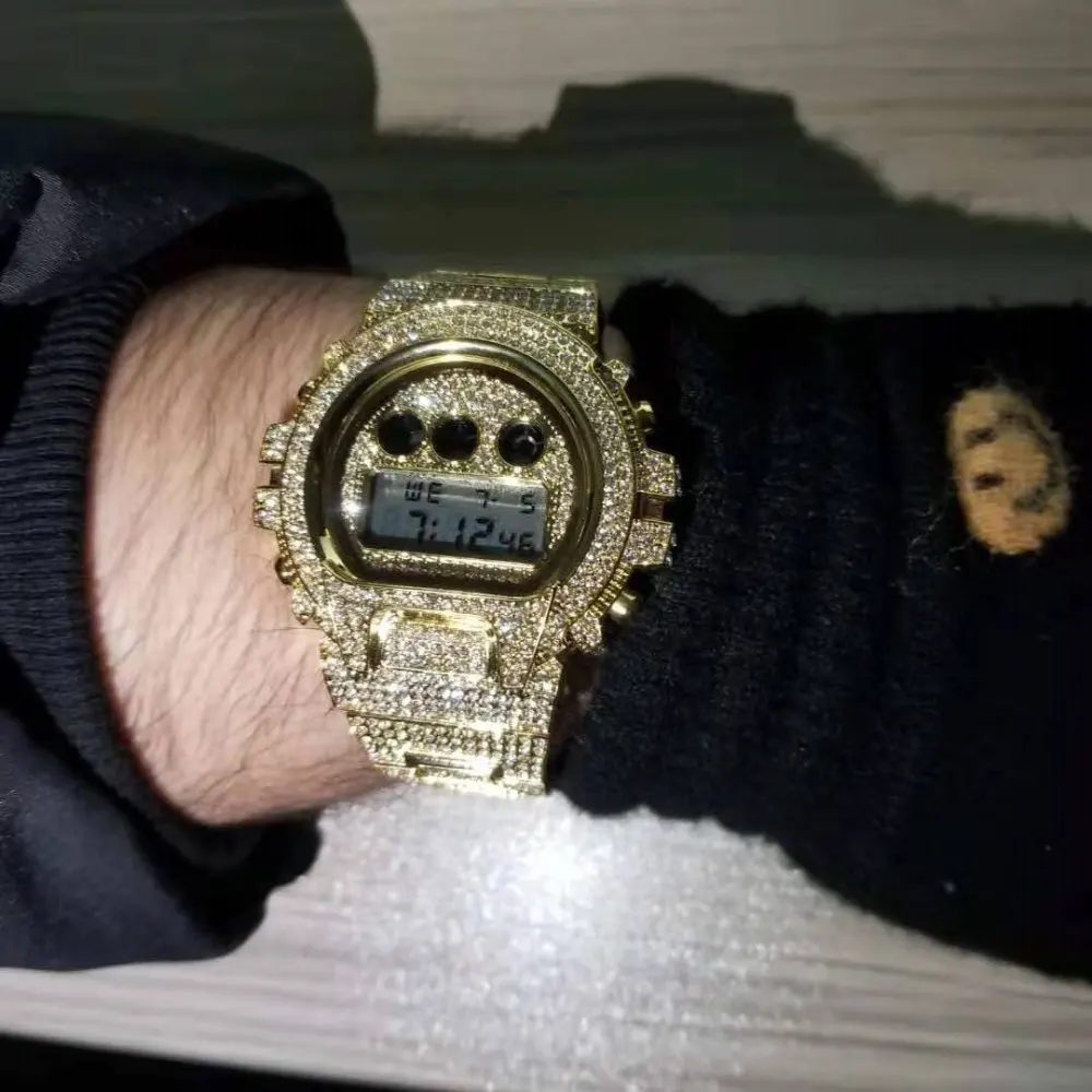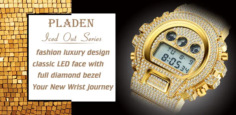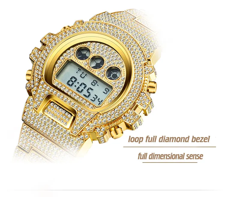 Роскошные мужские часы новое поступление многофункциональные алмазные хип-хоп золотые наручные часы модные G стиль ударопрочные светодиодные цифровые часы подарок