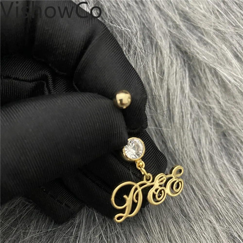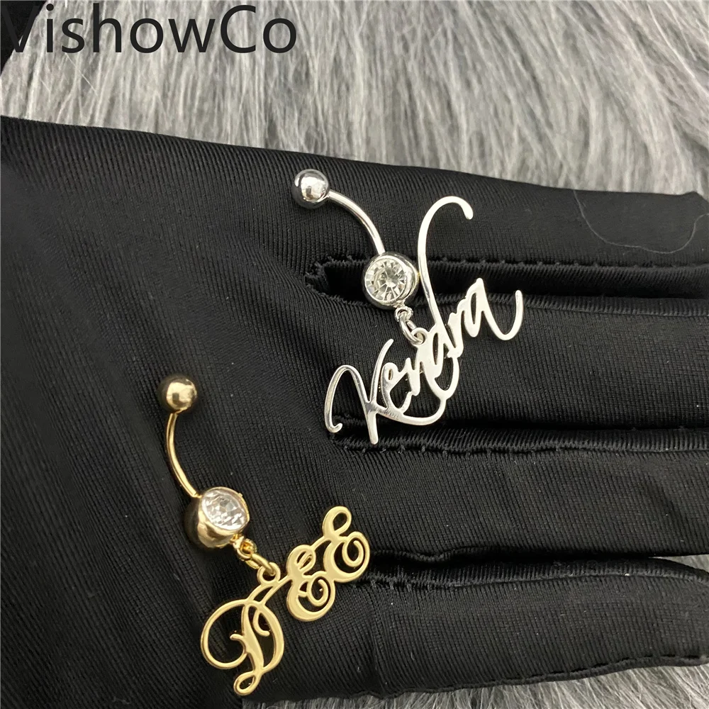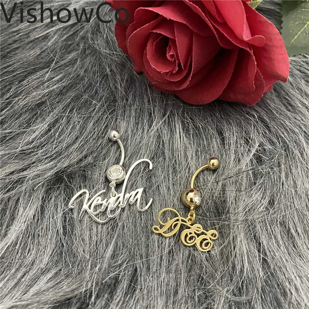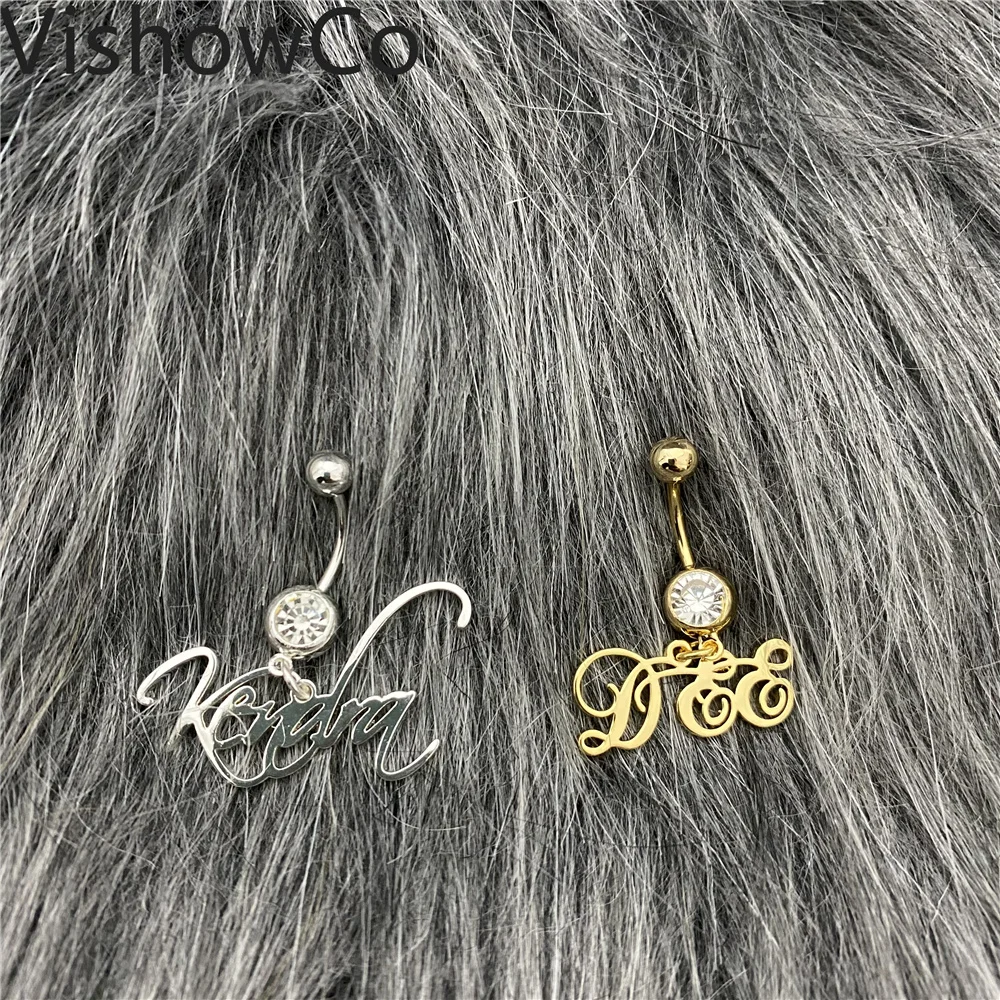 Кольцо для пупка с именем на заказ VishowCo, персонализированное кольцо из нержавеющей стали с цирконием для тела, Золотой подарок для женщин