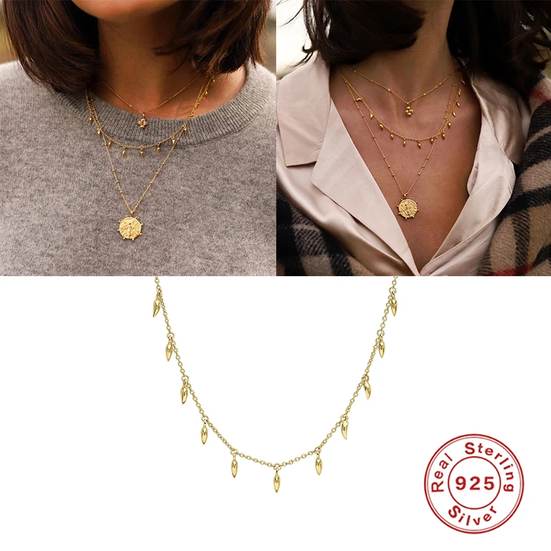 Автоклав реальные 925 стерлингового серебра INS мини капли воды ключицы ожерелье для женщин женские ожерелья серебро 925 ювелирные изделия, ожерелье