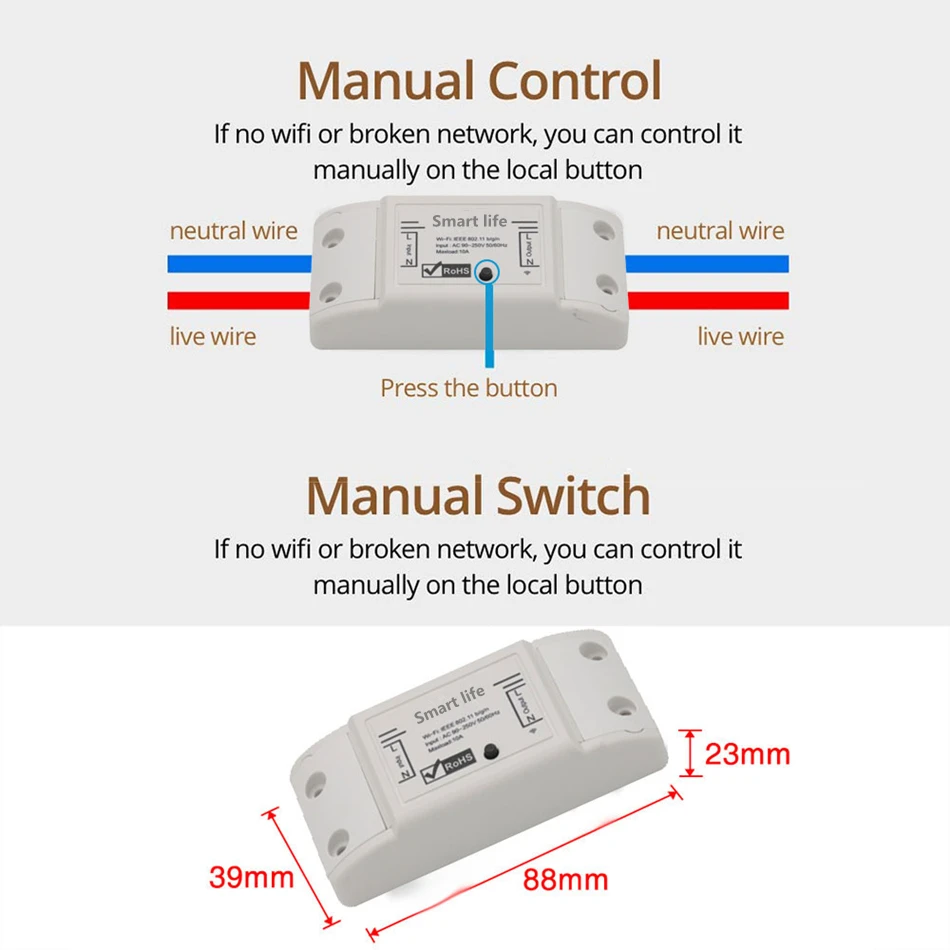 Умный переключатель Wi-Fi, таймер, беспроводное подключение, 10 А, ...