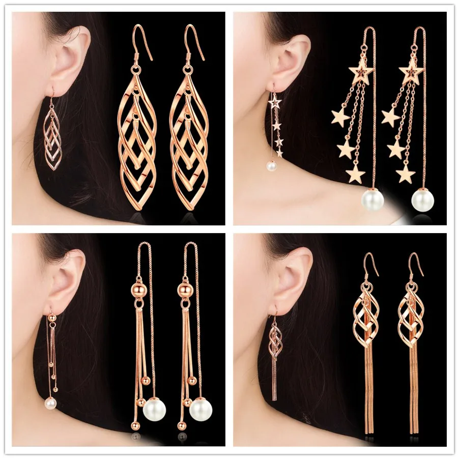 Прямая поставка Модные Элегантные Простые Длинные Серьги серебряног...