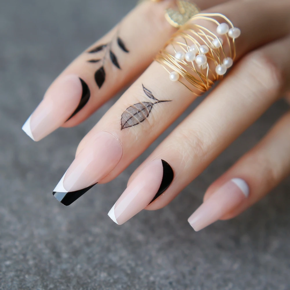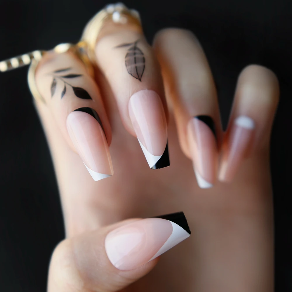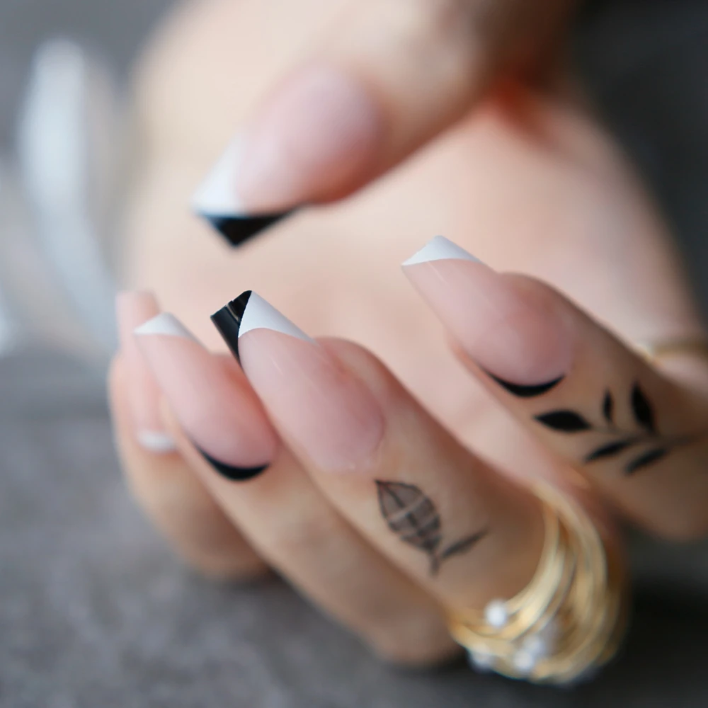 Гроб обнаженный французский черный контур белые накладные ногти балетное Искусство Ногти Классическая дуга французский дизайн накладные ногти 24 шт.