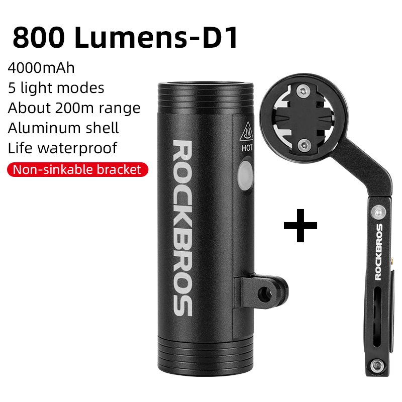 Велосипесветильник фсветильник ROCKBROS, 800 лм, 4000 мА ч, крепле...