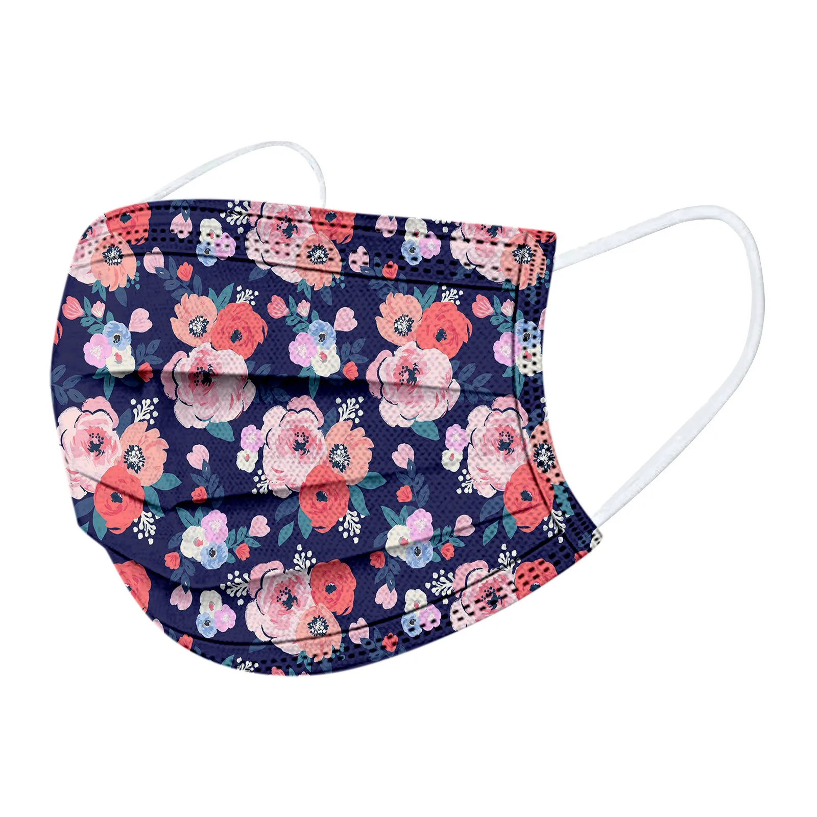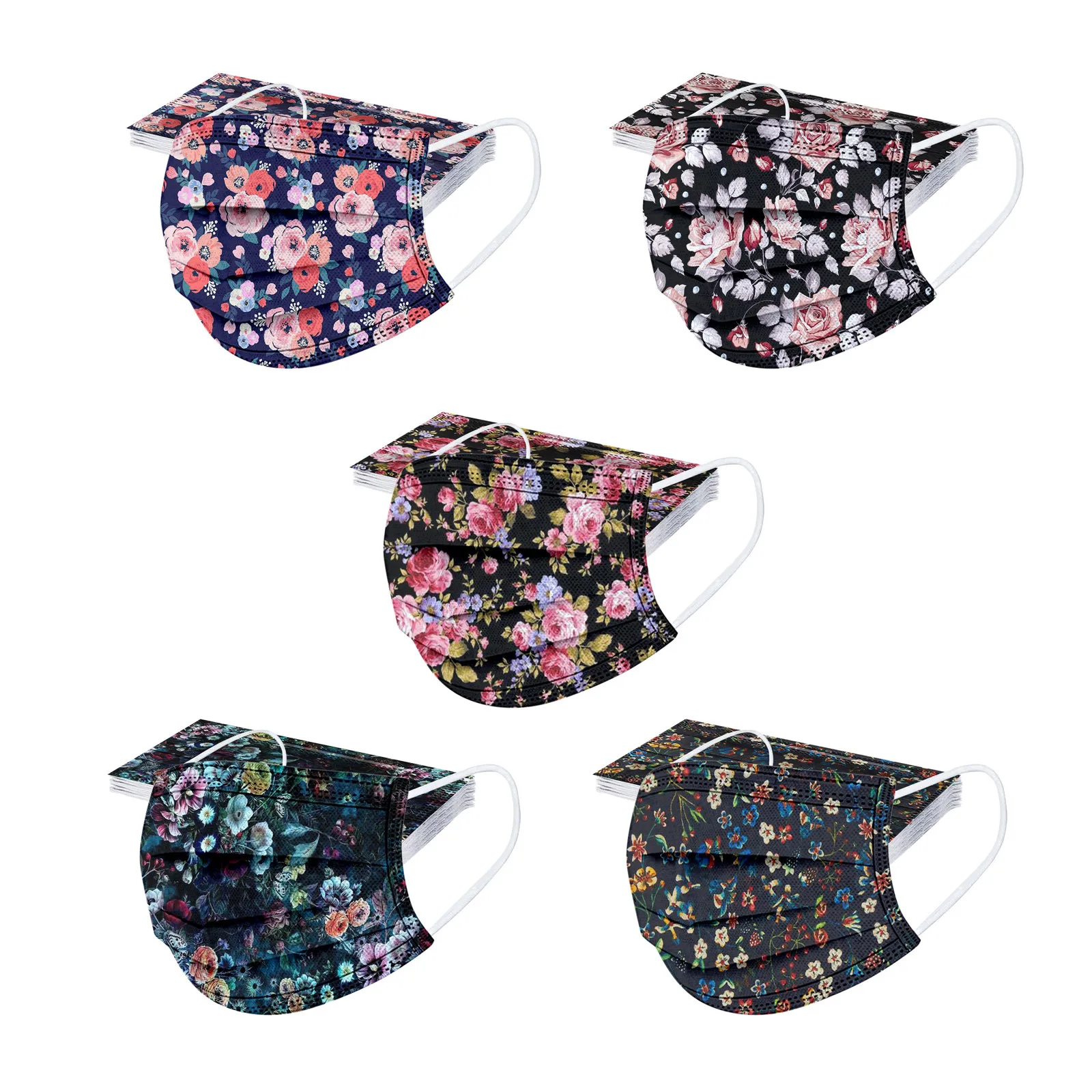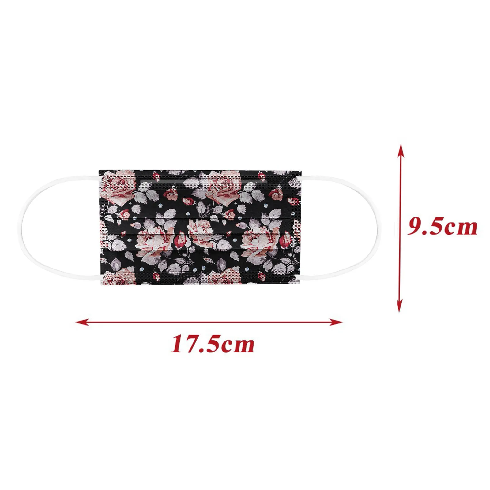Маска одноразовая с цветочным принтом для взрослых, пылезащитная 3-слойная Нетканая дышащая маска с заушным крючком, 50 шт.
