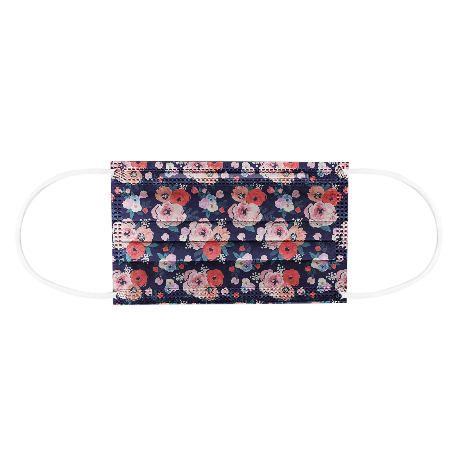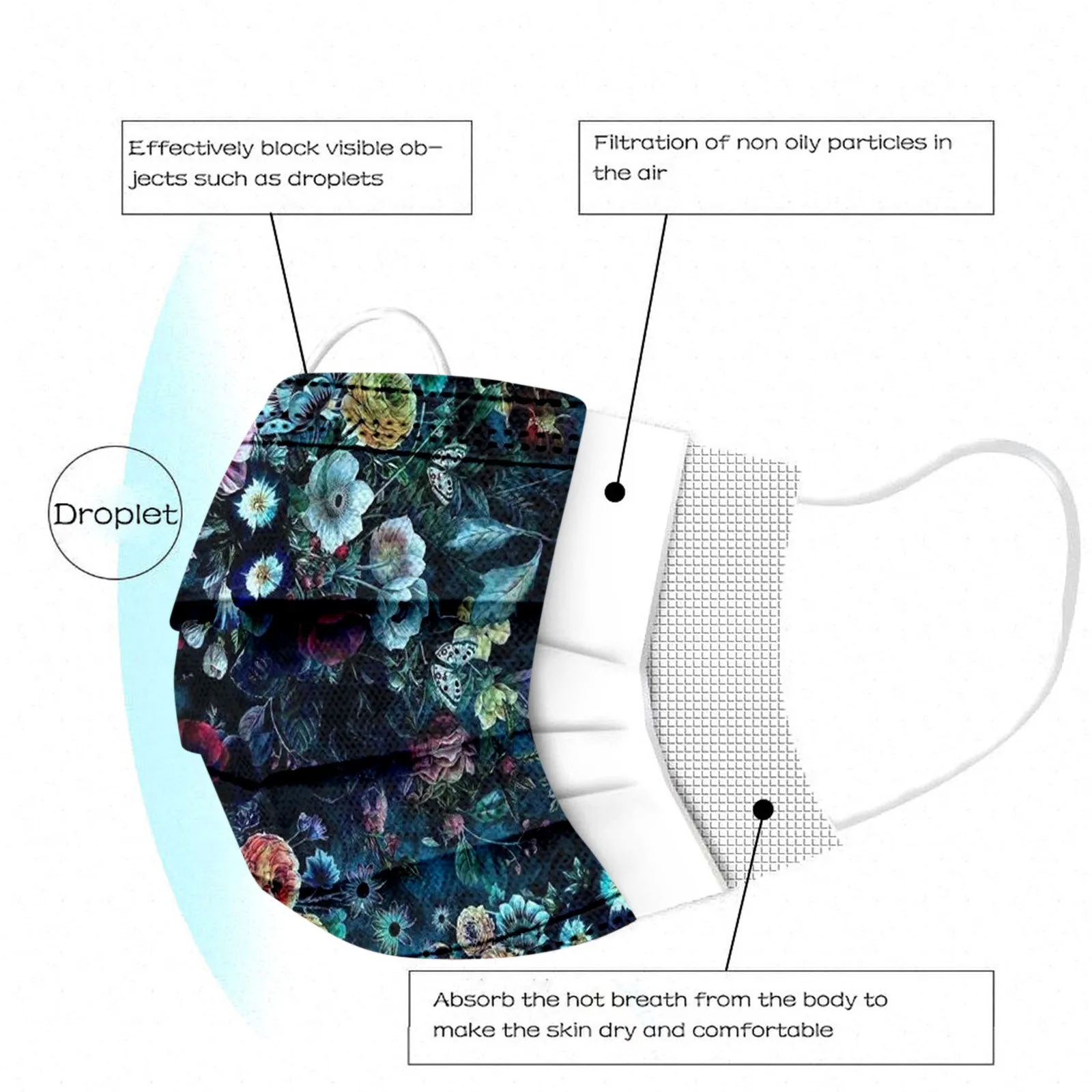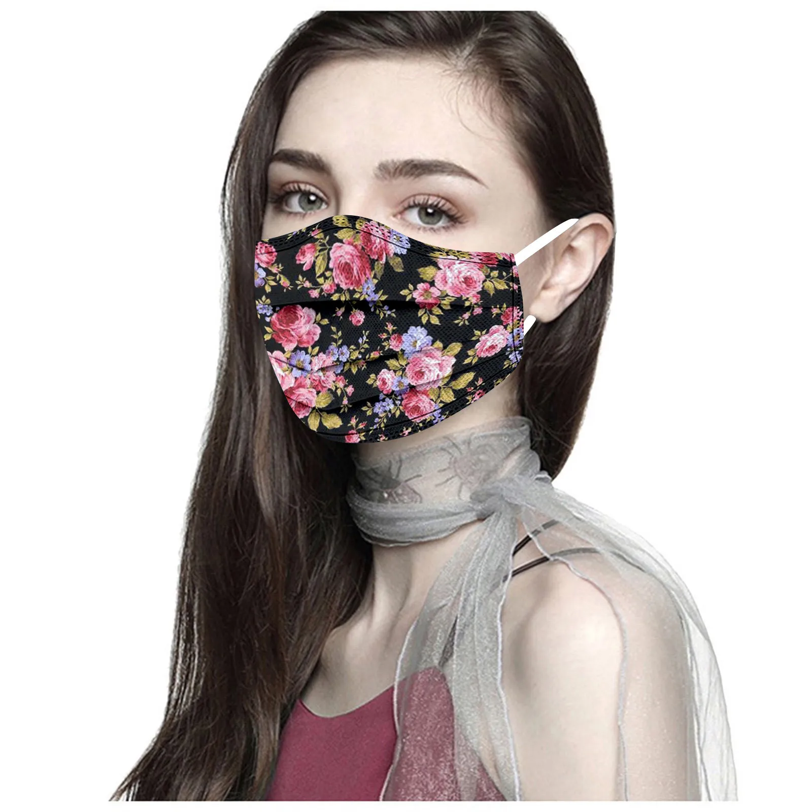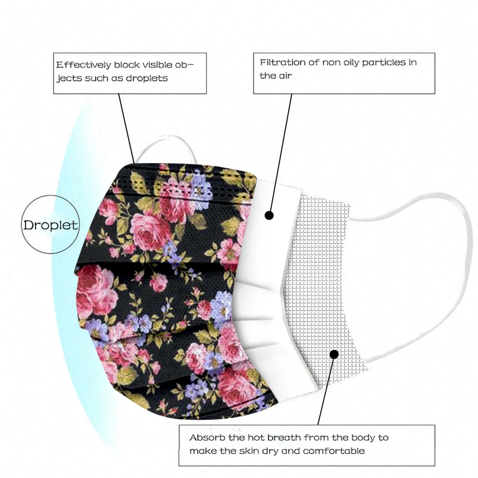 Маска одноразовая с цветочным принтом для взрослых, пылезащитная 3-слойная Нетканая дышащая маска с заушным крючком, 50 шт.