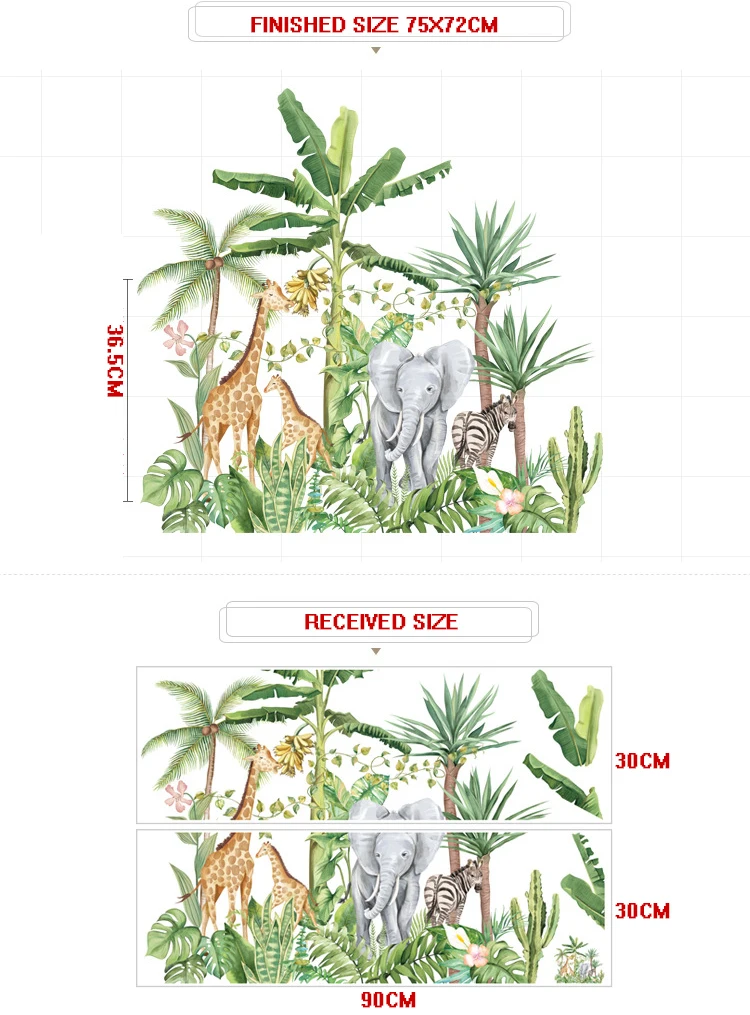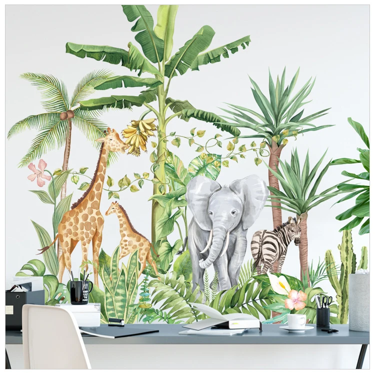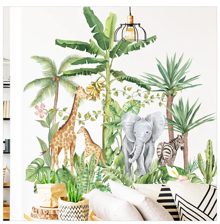 Тропический тропический лес джунгли животные слон жираф Скандинавское растение настенный наклейки диван детская спальня задний коридор украшение