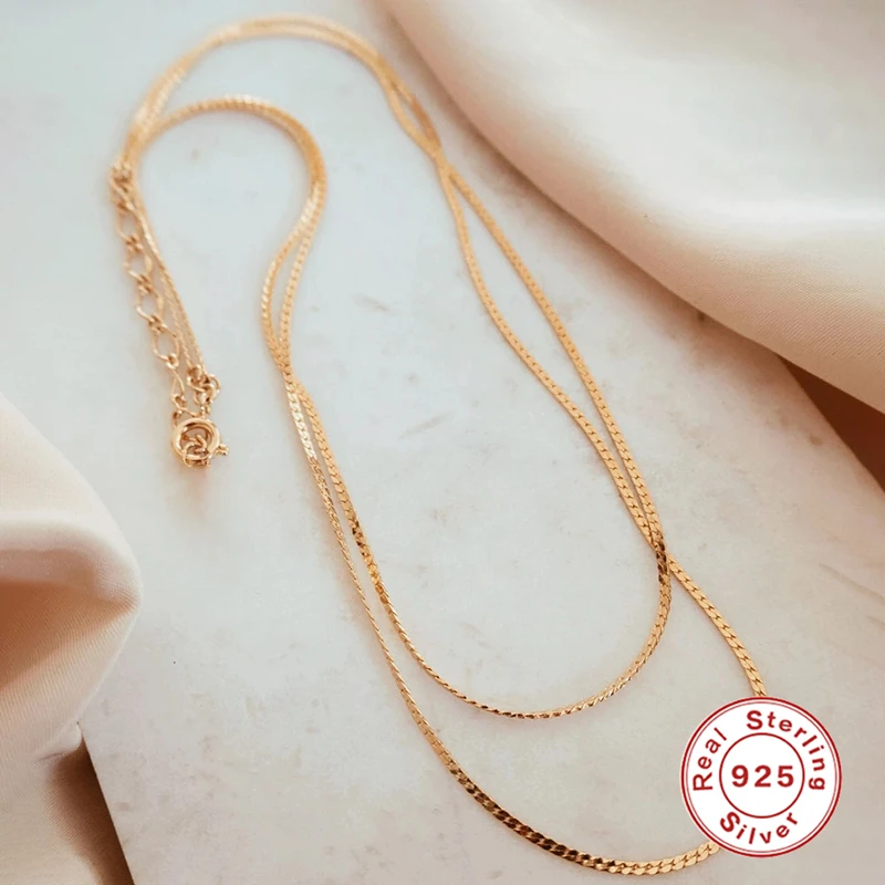 Двойное ожерелье BOAKO, цепочка до ключиц из стерлингового серебра ...