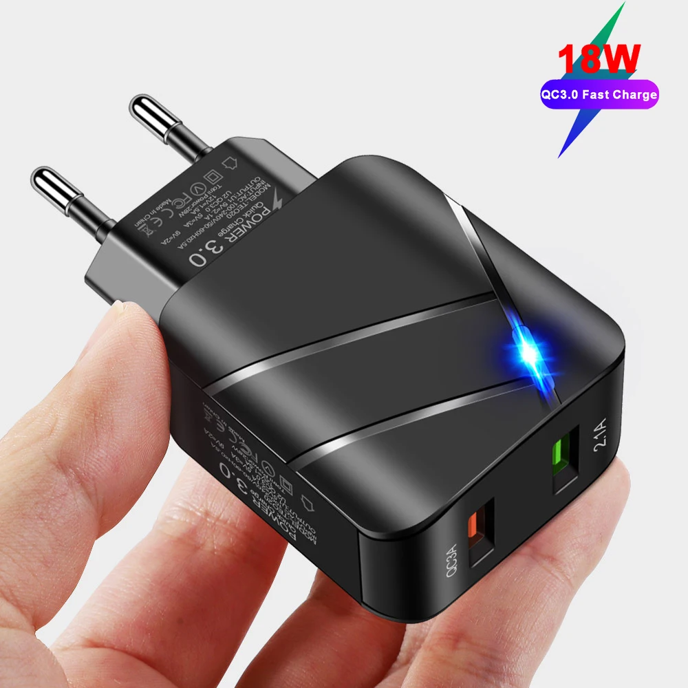 18 Вт Быстрая зарядка 3,0 адаптер для быстрой зарядки для SAMSUNG S10 + S9 S8 Xiaomi Mi9 Mi8 Redmi 6 Note 8 9 Pro двойное USB светодиодное быстрое зарядное устройство