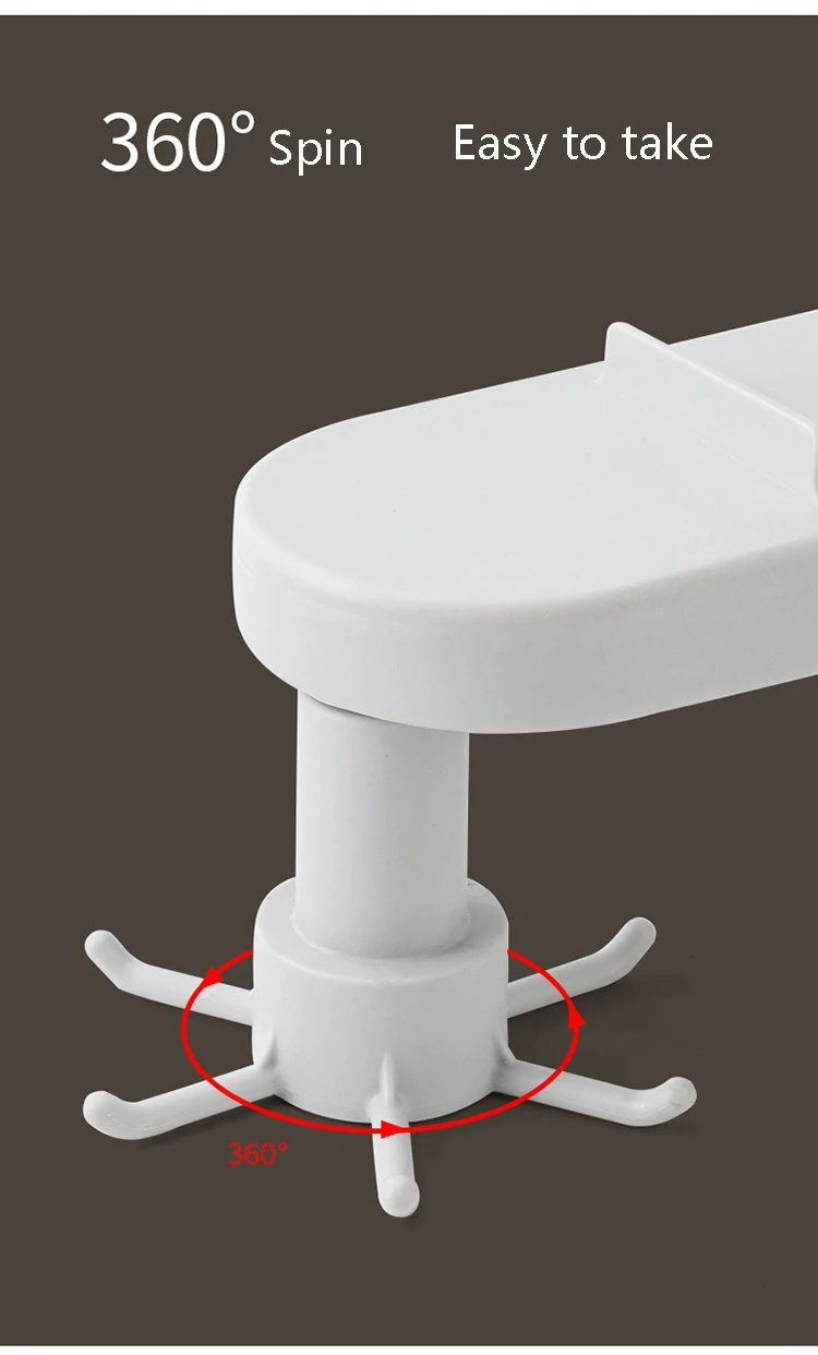 Обзор продукта: 1. Прочный: Изготовлен из полипропилена, прочный, износостойкий и долговечный. 2. Многофункциональный дизайн, легко экономит место. 3. Вращающийся дизайн, легко брать. 4. Установка клея, простая эксплуатация. Примечание: В связи с разницей цветовой и световой настройки мониторов, фактический цвет может немного отличаться от цвета картинки. Возможны отклонения в 1-3 см вследствие измерений вручную.