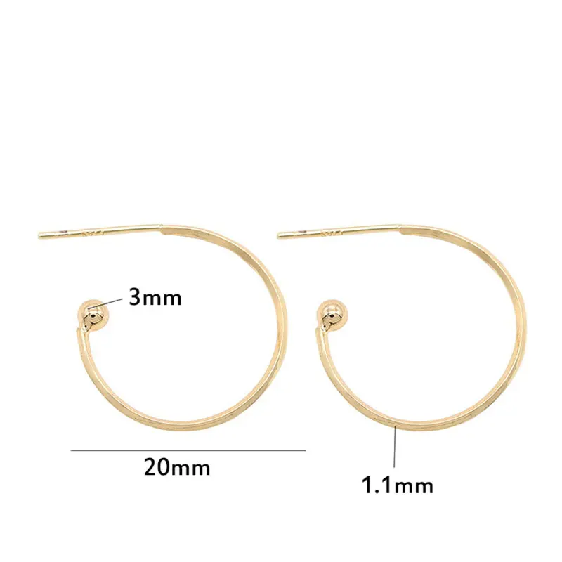 Серьги-кольца, позолоченные, 14 к, 20 мм, 6 шт.