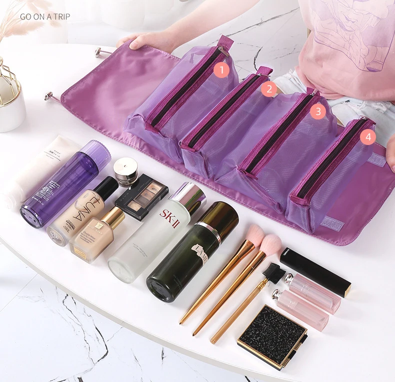 Съемный складной органайзер для косметики 4 в 1, вместительная многофункциональная косметичка для Хранения Туалетных принадлежностей, популярная дорожная сумка